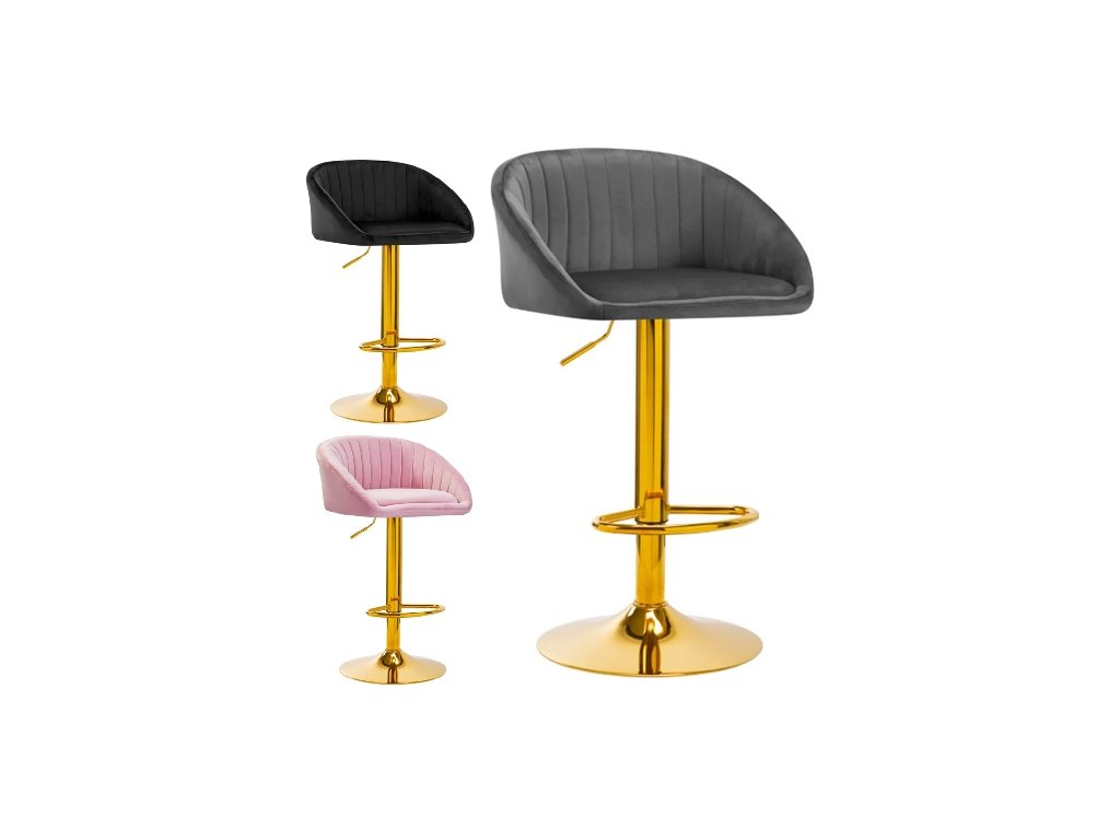 Stolička má měkké sametové čalounění v odstínech šedé, které jí dodává exkluzivní charakter. Stylové prošívání na opěradle zdůrazňuje její elegantní vzhled a pečlivé řemeslné zpracování. Kulatá základna s protiskluzovou gumou zajišťuje stabilitu, zatímco zlatá barva ladí se sametovým čalouněním a dodává stolici vytříbený styl. Ergonomicky tvarovaný sedák a nastavitelná výška dělají z této stoličky ideální volbu pro ty, kteří si cení stylu a pohodlí.