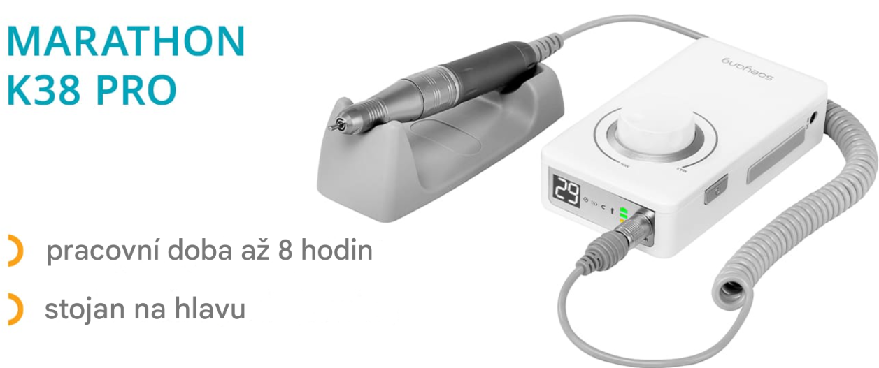 Kompaktní akumulátorová vrtačka na nehty Saeyang Marathon K38 PRO s bezkartáčovým motorem je praktické zařízení ideální pro mobilní nehtové technikky . Usnadňuje tvarování nehtů a nehtové kůžičky a vytváří perfektní základ pro další styling. Umožňuje pohodlný provoz až 8 hodin na jedno nabití .