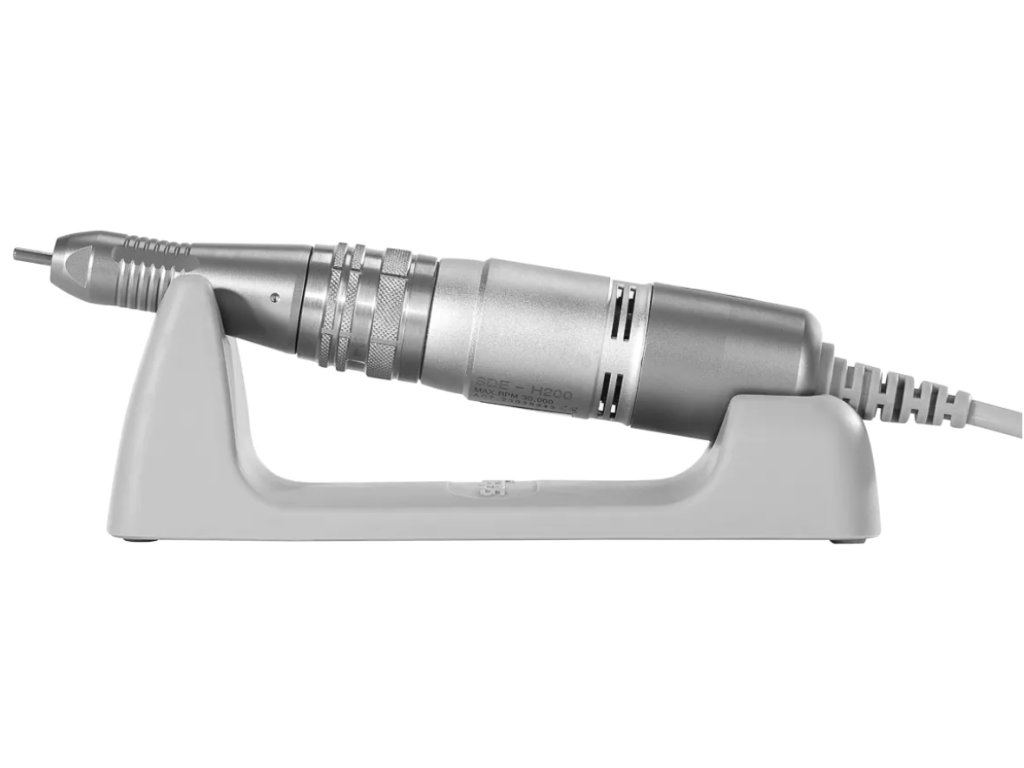 Dodávané příslušenství zajišťuje nejen bezpečnost, ale také pohodlí při používání. Při používání lze hlavu bezpečně odložit na přiložený speciální silikonový stojan. Otvor pro frézu na krytu umožňuje připravit si potřebné nástroje, abyste je měli při práci po ruce. Ochrana proti přetížení s výstražným LED signálem chrání motor před přehřátím, zajišťuje větší bezpečnost provozu a chrání před poškozením stroje.