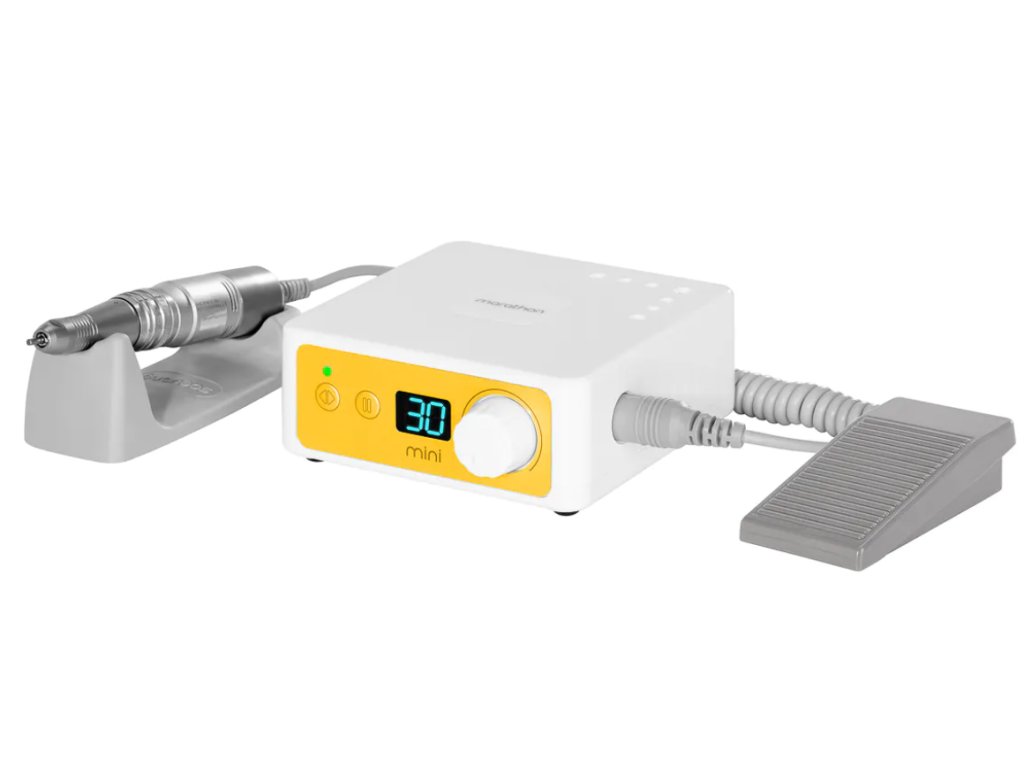 Špičková minibruska na nehty Saeyang Marathon K35 je praktický přístroj, který vám umožní důkladně zpracovat nehty a nehtovou kůžičku a připravit je na další ošetření. Použití přístroje výrazně usnadňuje odstranění zbytků předchozí úpravy nehtů. Díky dobře vyvážené hlavě, kompaktním rozměrům, promyšleným funkcím a množství dostupných možností je bruska ideální pro profesionální použití, zejména pro mobilní služby.