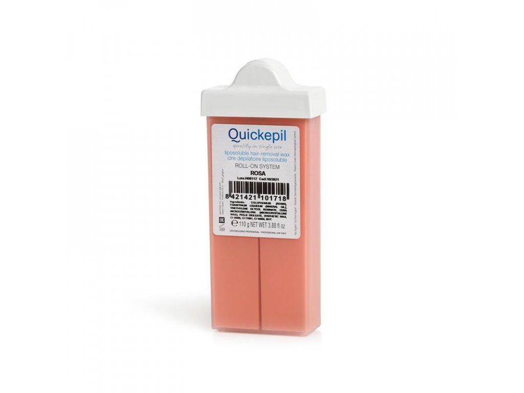 Roll-on vosk QUICKEPIL je speciálně vyroben pro kosmetičky, které hledají vynikající výsledky. Díky speciální receptuře váleček natáhne vosk na mnohem tenčí proužky, což způsobí jeho téměř okamžité ochlazení, čímž se minimalizuje pálení. Výrobek se pak snadno odstraní pomocí proužků. Jemný vosk s příjemnou vůní růží s obsahem růžového oleje. Nejlepší pro jemnou, citlivou pokožku s kapilárními problémy Speciální úzká válečková hlavice pro depilaci obličeje.