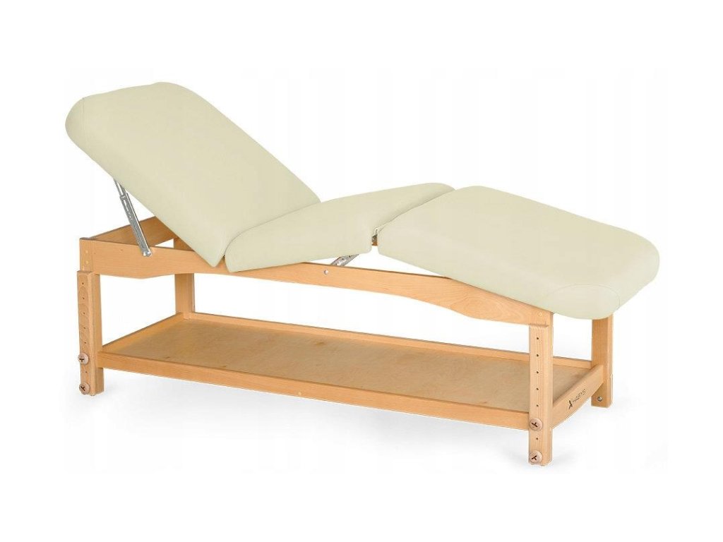 Pohodlná třídílná pohovka s výškovým nastavením, určená pro masážní místnosti a kosmetické salony s širokými možnostmi polohování desky stolu. Nakloněná deska stolu umožňuje polohovat pacienta v souladu s požadavky prováděné procedury. Potah z pohodlné pěny poskytuje pacientovi během procedury naprosté pohodlí a umožňuje plnou relaxaci. Přírodní bukové dřevo a masivní deska stolu se zaoblenými rohy dodávají pohovce moderní a efektivní vzhled. Lehátko je vybaveno praktickou poličkou na kosmetiku a doplňky.