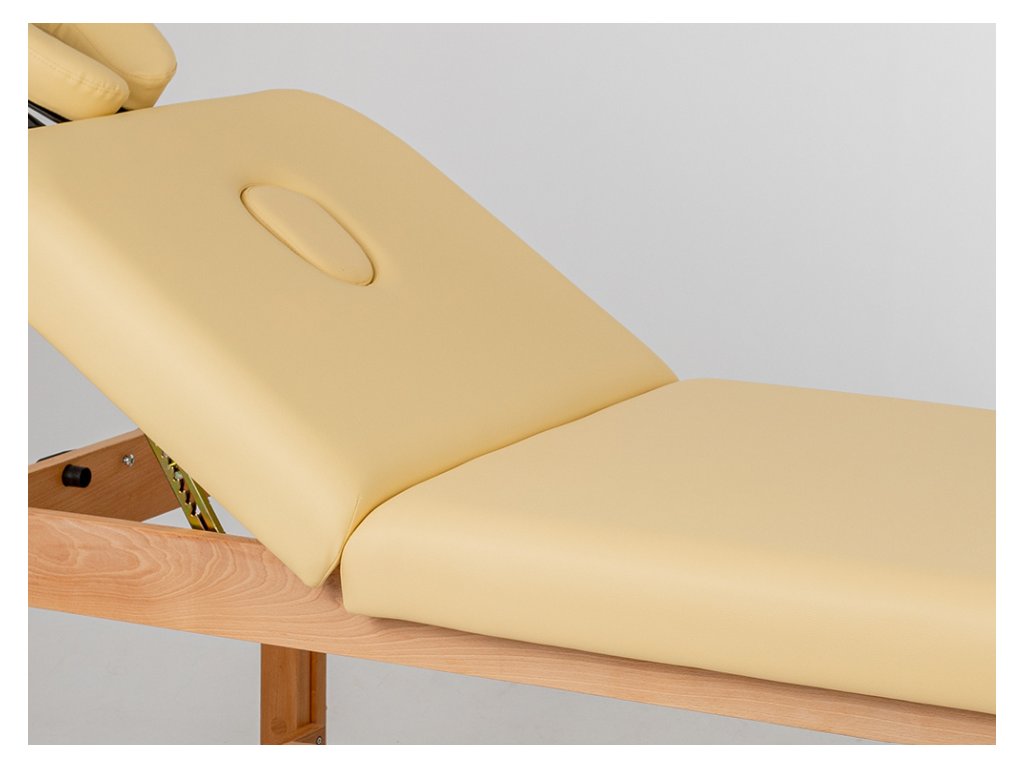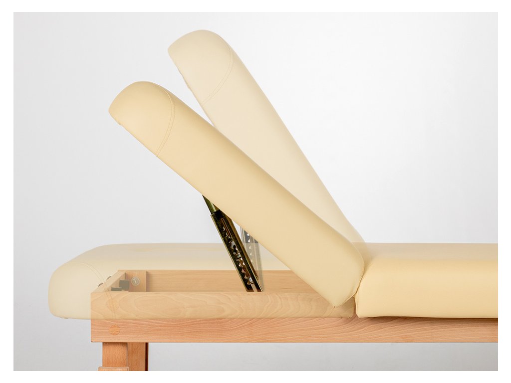 Dvojité skládání vrchní části lehátka umožňuje pacientovi umístit se do nejpohodlnější polohy v závislosti na typu prováděného ošetření. Lehátko je vyplněno 6 cm pěny, potaženo čalouněním příjemným na dotek, které pacientovi poskytuje plné pohodlí a umožňuje volné polohování těla.