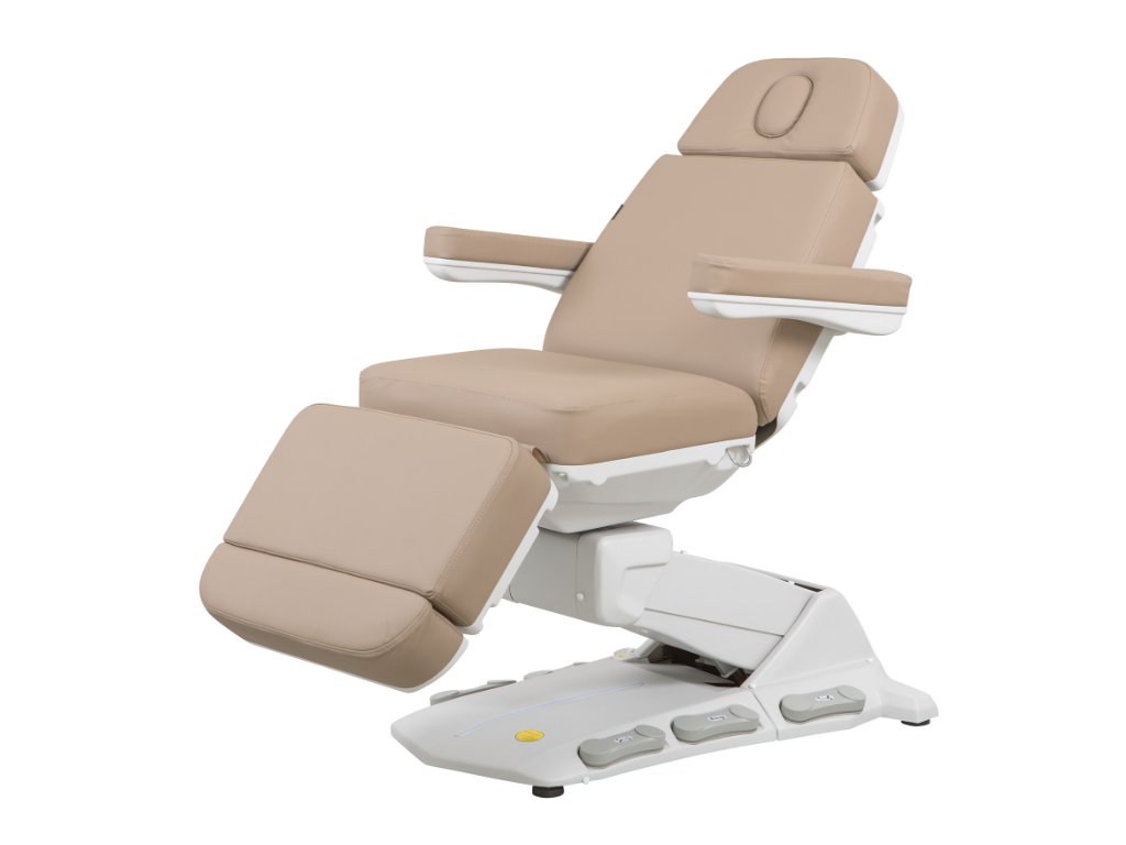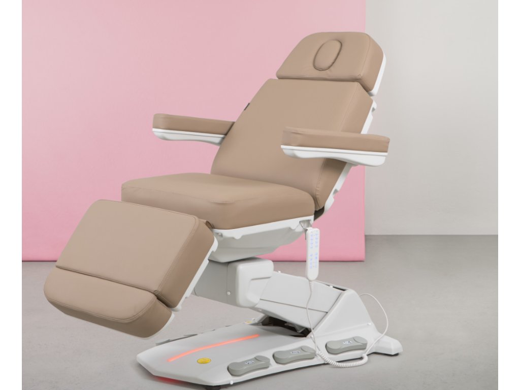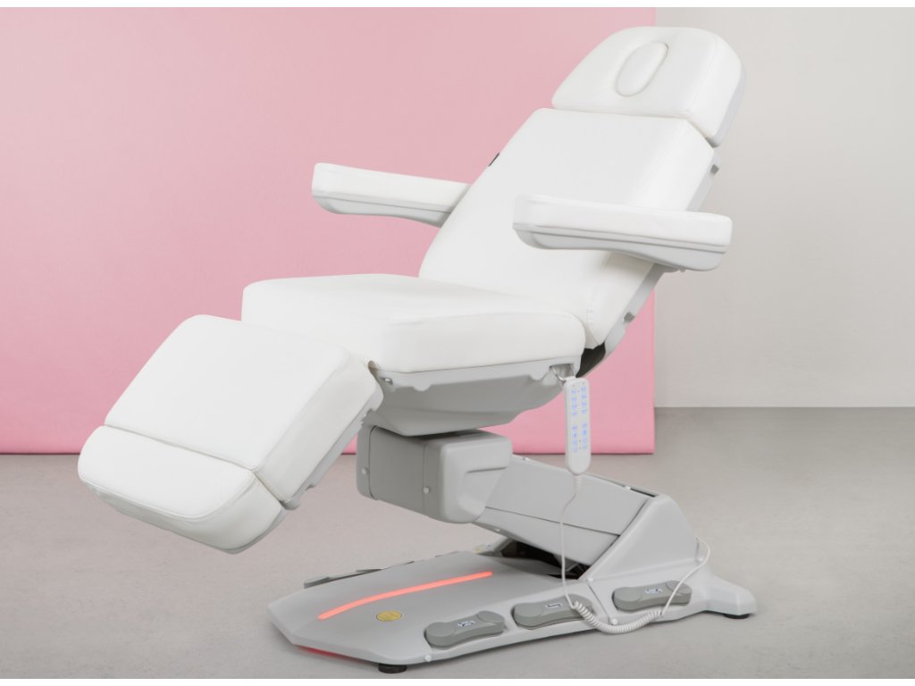Moderní, elektricky nastavitelné kosmetické křeslo, zajišťující komfort při zákroku nejen pacientům, ale i osobám provádějícím zákrok. 4 motorové