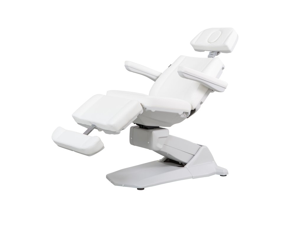 Vysoce pohodlné 3dílné kosmetické křeslo. Vybaveno 4 motory, které ovládají výšku a sklon opěradla, sedáku a podnožky.