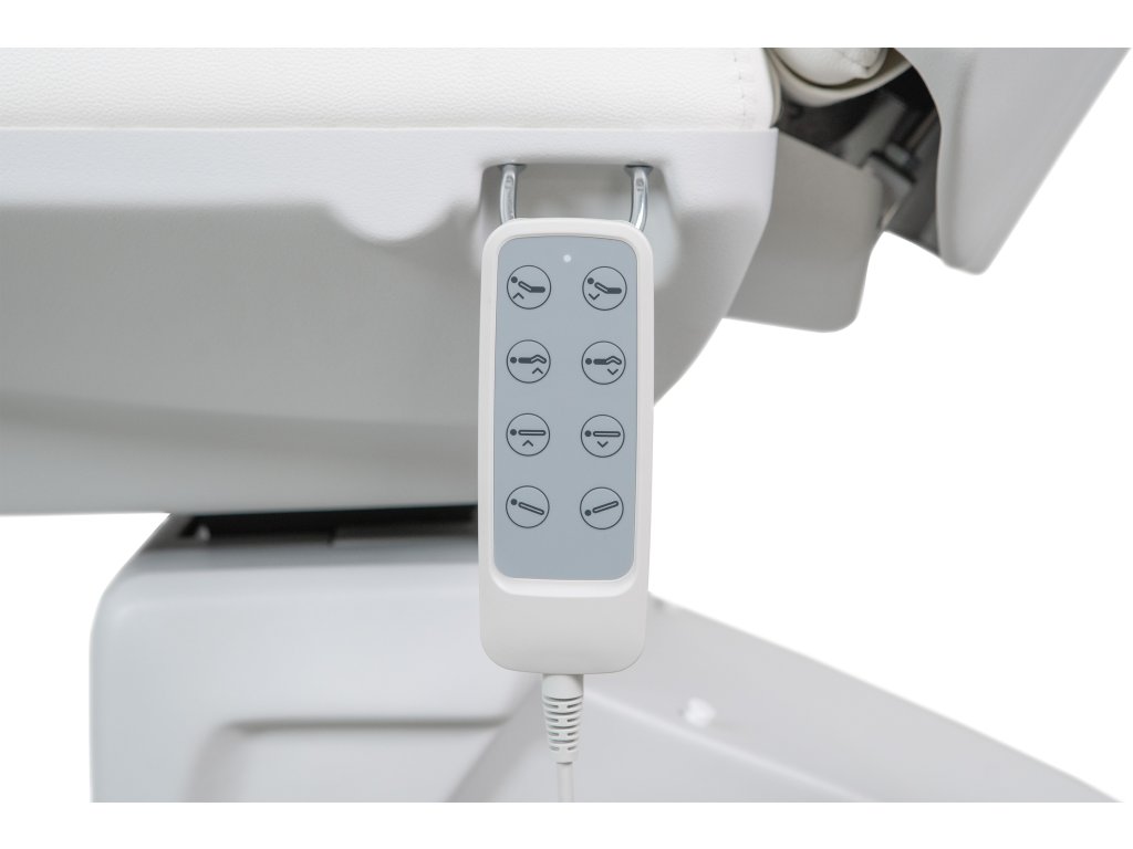 Elektrické kosmetické křeslo Azzurro 803D je vybaveno 3 pohony, které se ovládají kabelovým dálkovým ovladačem nebo přiloženým nožním pohonem.