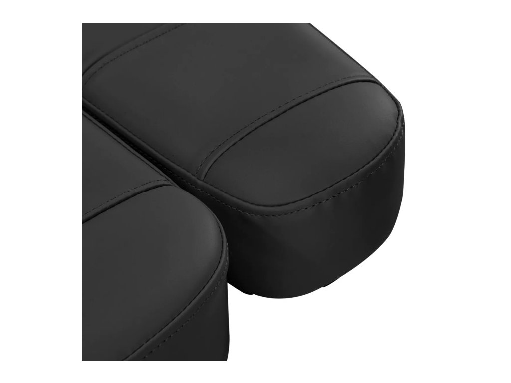 Křeslo je vyplněno tvarovanou pěnou a potaženo syntetickou kůží v odstínech černé, která je příjemná na dotek. Díky použitému materiálu se zařízení snadno čistí, je odolné vůči vlhkosti a vybraným dezinfekčním prostředkům. Pevná základna z odolného materiálu v odstínech černé zajišťuje stabilitu během ošetření. Správně profilované lemy dodávají křeslu stylový vzhled a dodávají sedáku ergonomický vzhled. Minimalistický, jednoduchý design a klasické barvy umožňují zapadnout do každého interiéru.