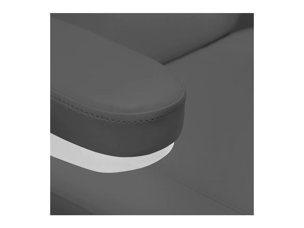 Křeslo je vyplněno tvarovanou pěnou a potaženo syntetickou kůží v odstínech šedé, která je příjemná na dotek. Díky použitému materiálu se zařízení snadno čistí, je odolné vůči vlhkosti a vybraným dezinfekčním prostředkům. Pevná základna vyrobená z odolného materiálu v odstínech bílé zajišťuje stabilitu během ošetření. Správně profilované lemy dodávají křeslu stylový vzhled a dodávají sedáku ergonomický vzhled. Minimalistický, jednoduchý design a klasické barvy umožňují zapadnout do každého interiéru.