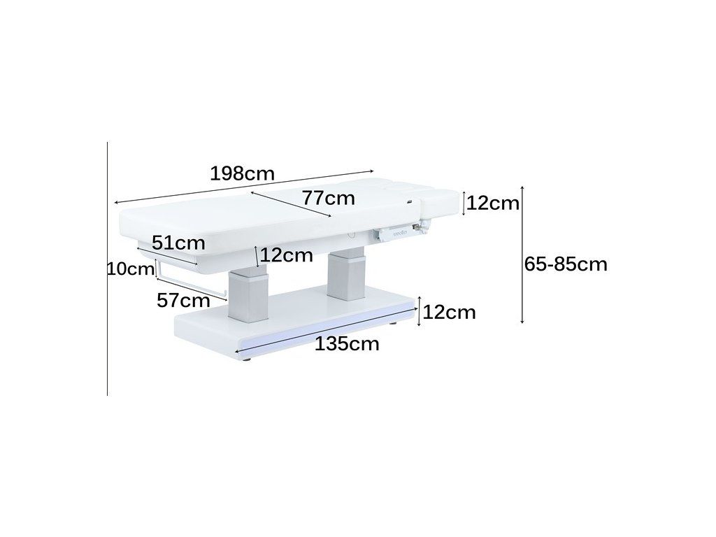 Elektrické masážní lehátko se 4 rychlými motory, čalouněná bílou PU, vybavená topným systémem s nastavitelným teplotním rozsahem až 60 °C.