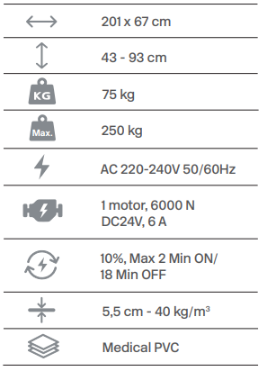 ‑ Výškově nastavitelný od 43 cm do 93 cm v vodorovné poloze.