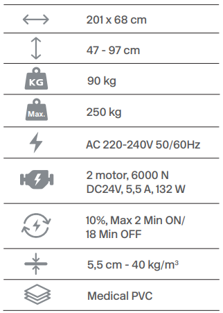 ‑ Nožní ovladač pro Trendelenburgovu/kyfózu (+20°).