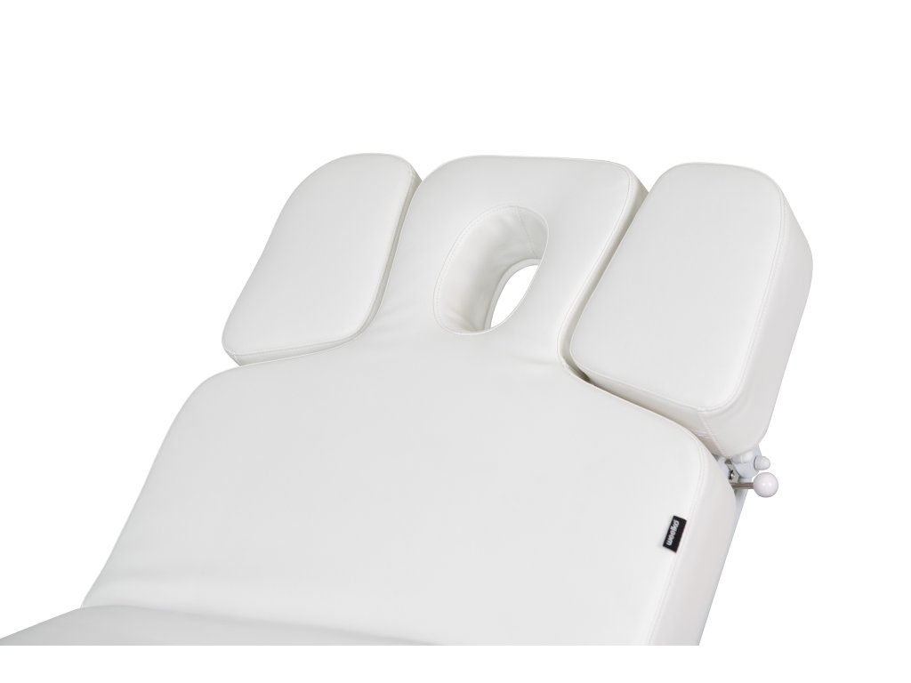 Nastavitelné područky a hlavová opěrka s otvorem pro obličej.
