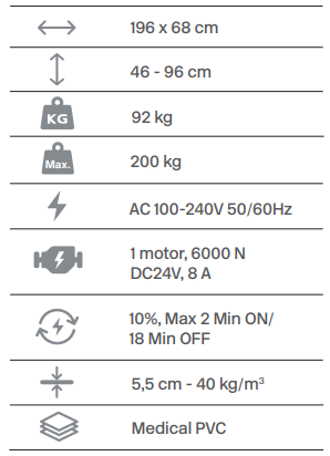 ‑ Nastavitelná výška od 46 cm do 96 cm v vodorovné poloze.