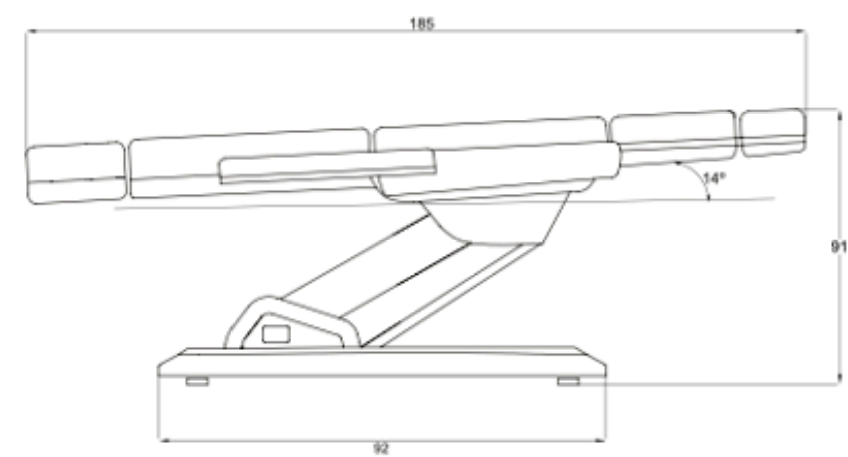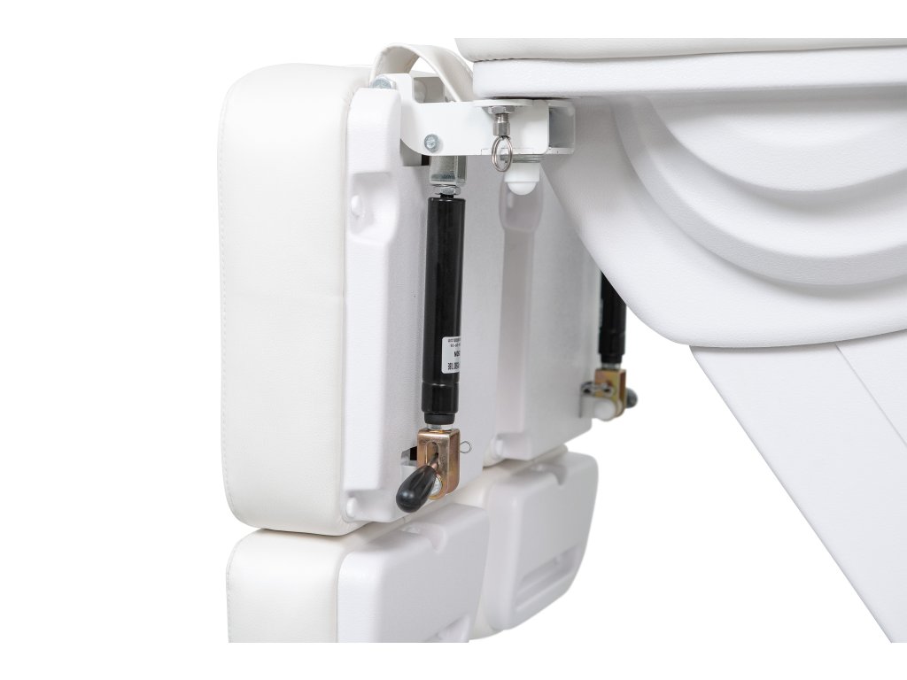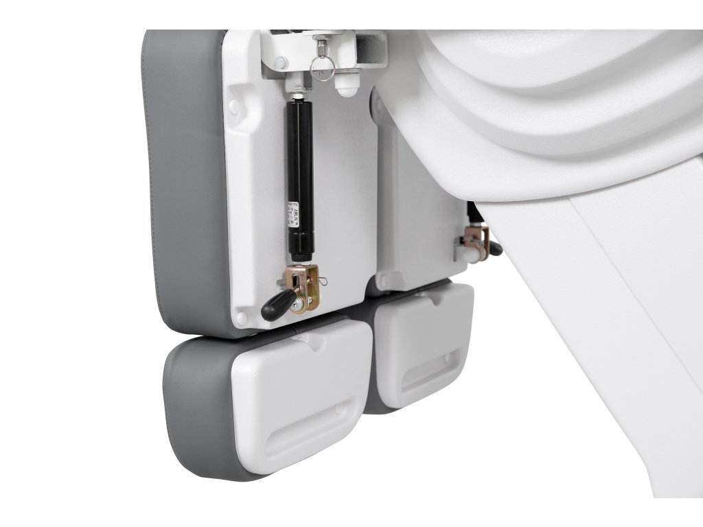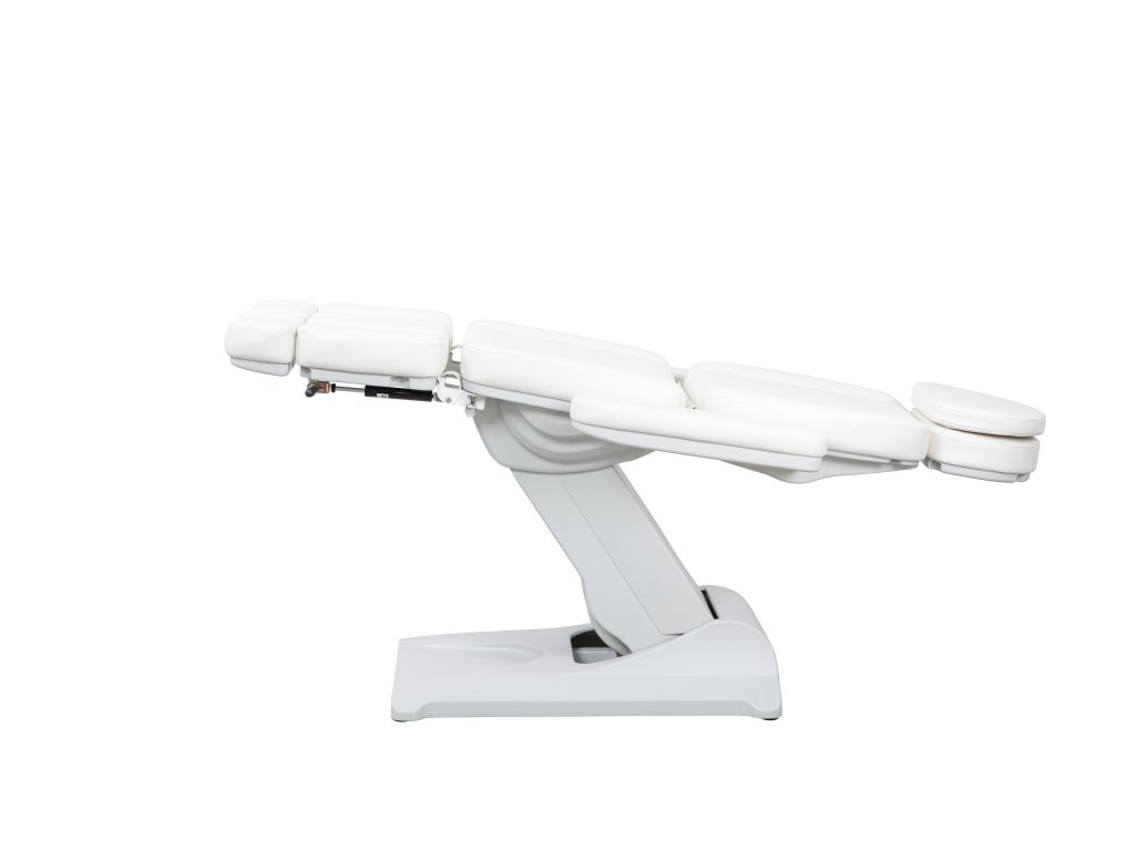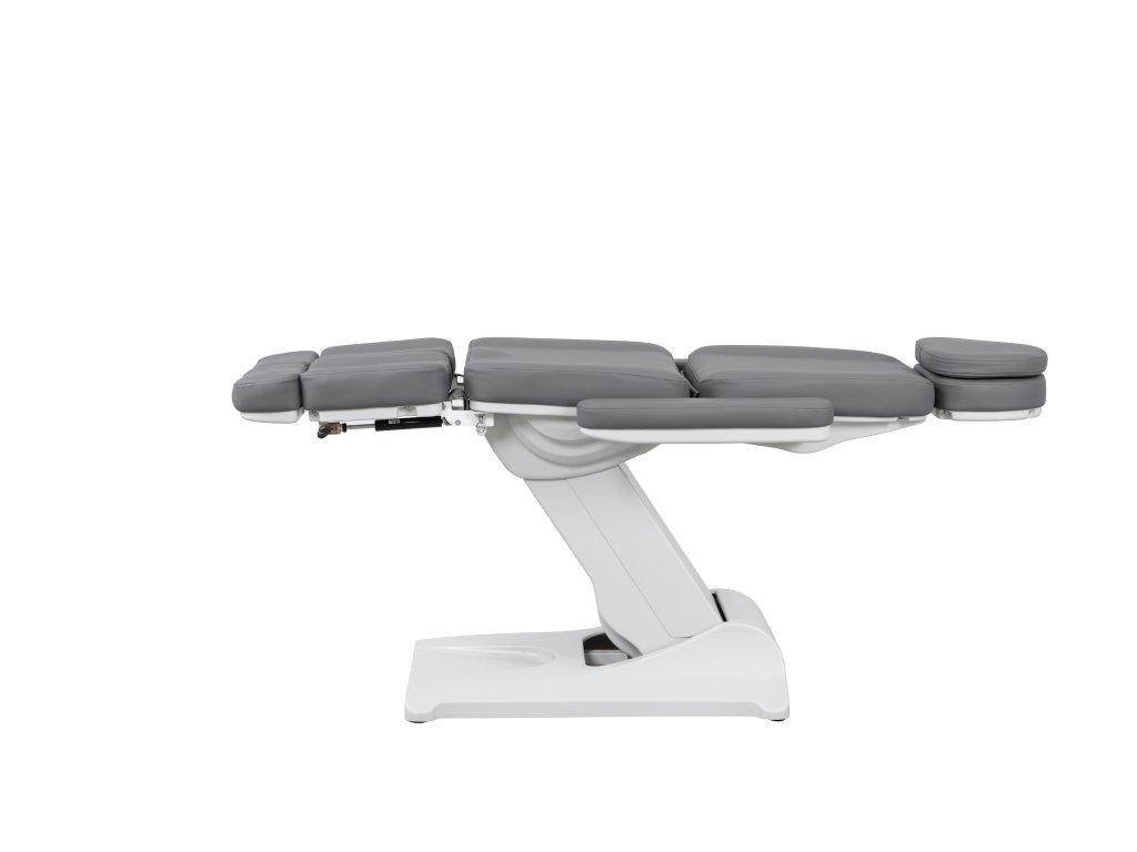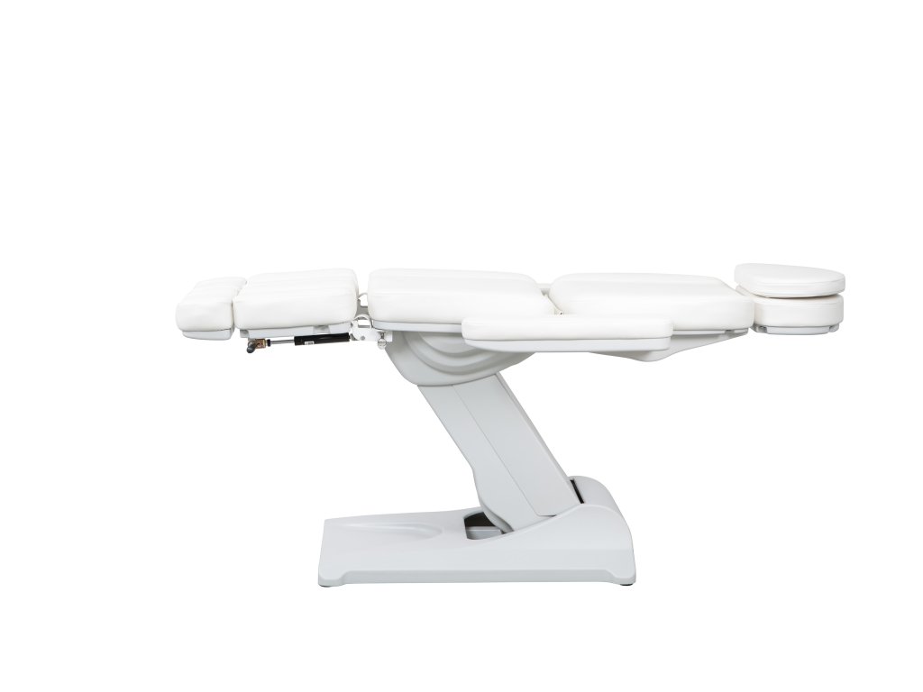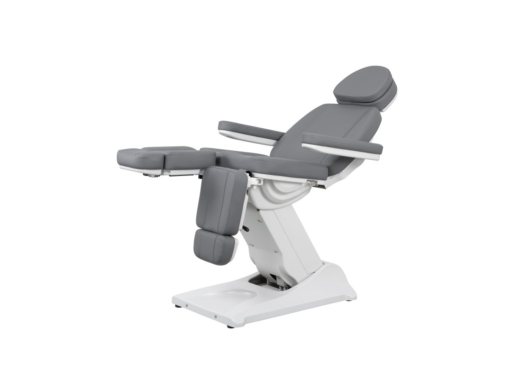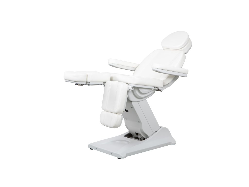 Elektrické pedikérské křeslo s 3 motory které ovládají výšku křesla, zádové opěradlo a sklon sedáku. Podnožky se ovládají manuálně.