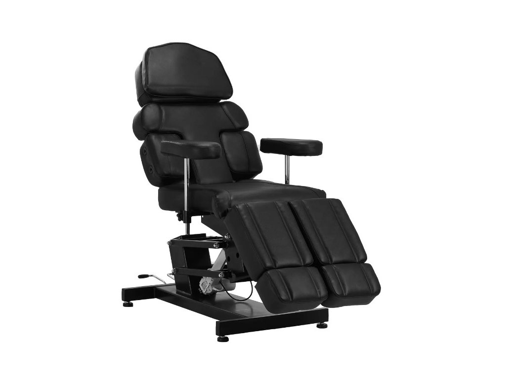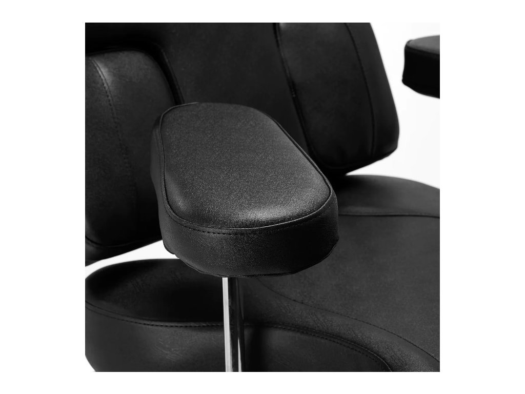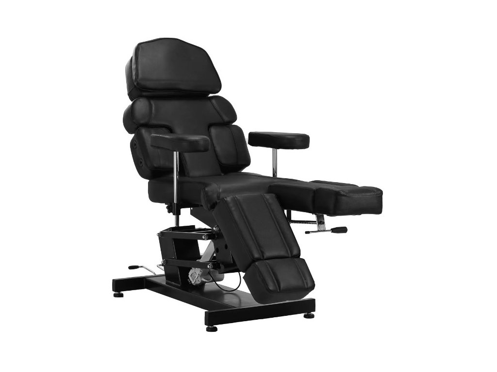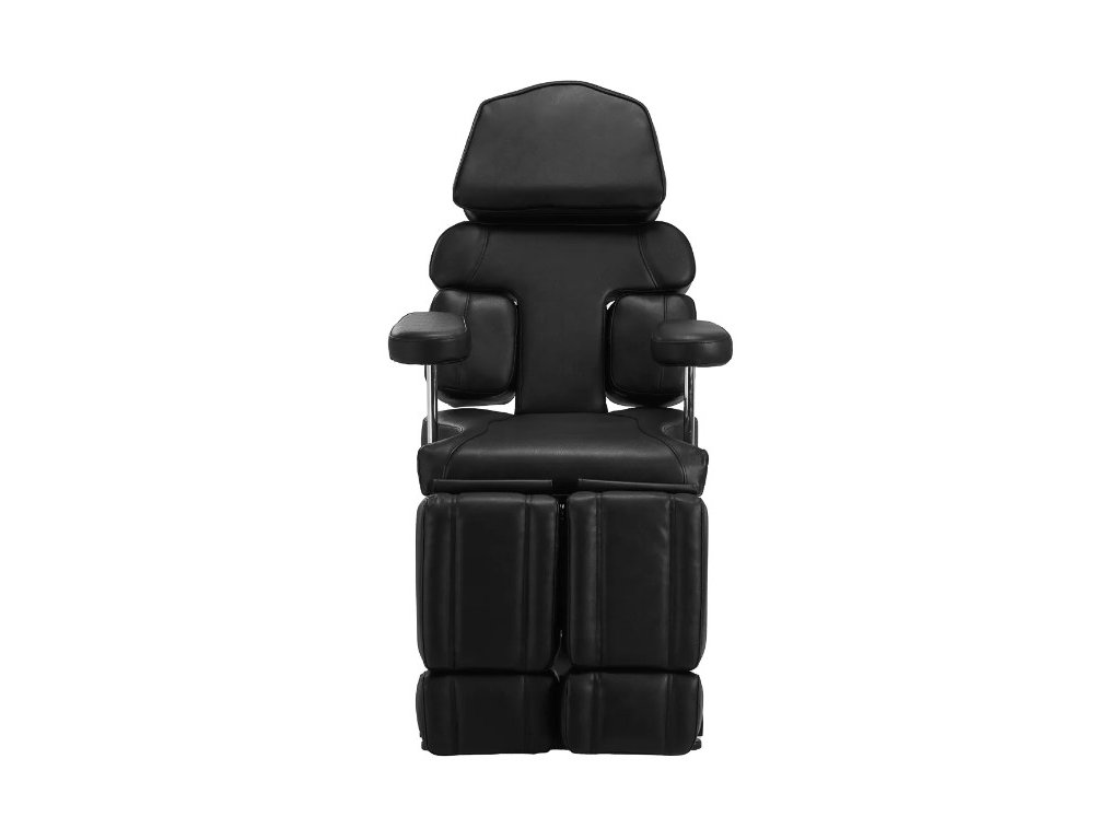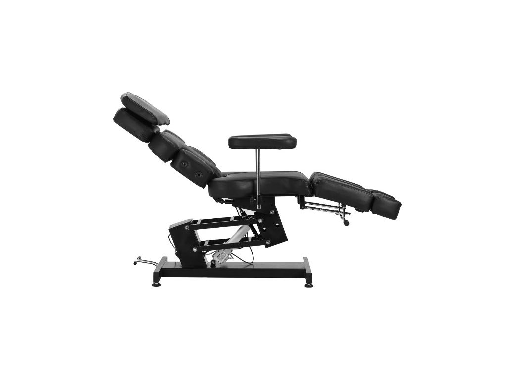 Díky jednoduchému vzhledu a klasickým barvám je křeslo ideální pro každý tetovací salon, díky čemuž je výkon služeb mnohem efektivnější. Pomáhá jak tetované osobě, tak umělci zaujmout pohodlnou polohu. Pěnová výplň odolná proti deformaci, potah je vyroben ze syntetické kůže příjemné na dotek v odstínech černé a stabilní kovový rám zajišťují odolnost, stabilitu a snadné čištění.