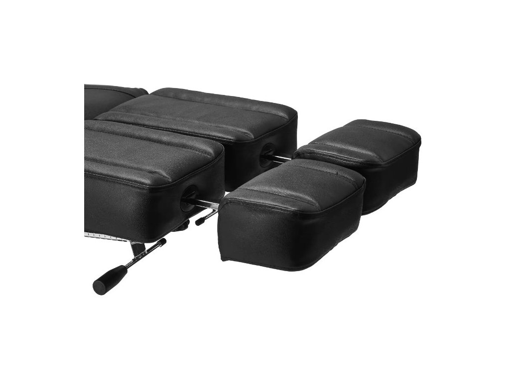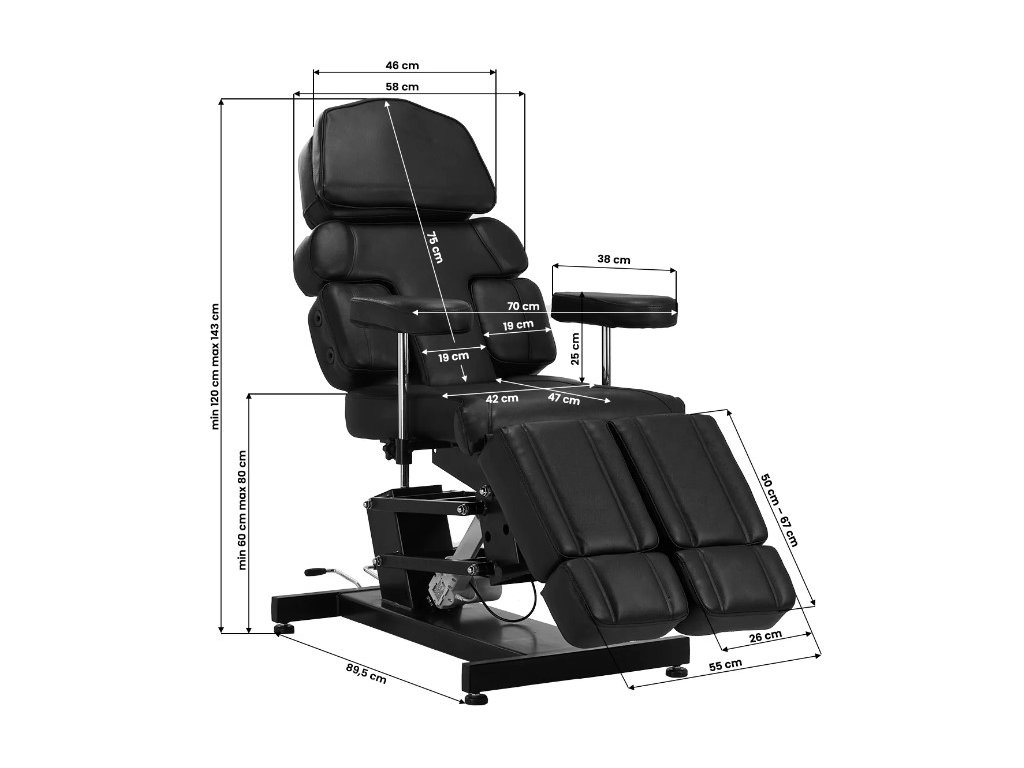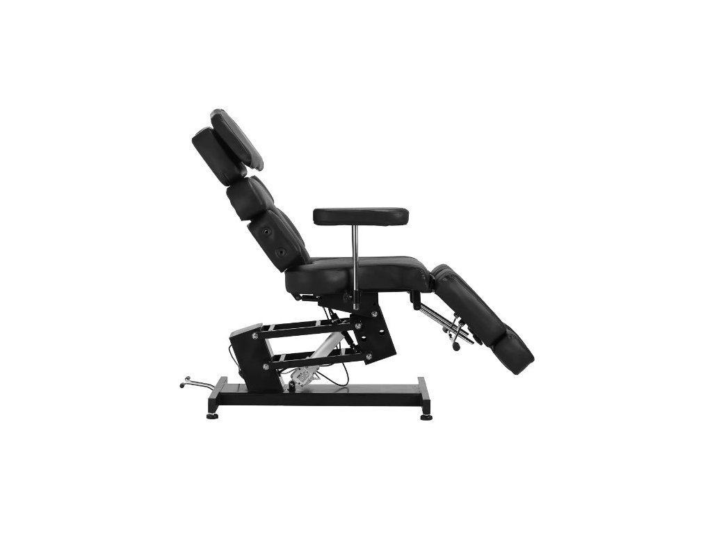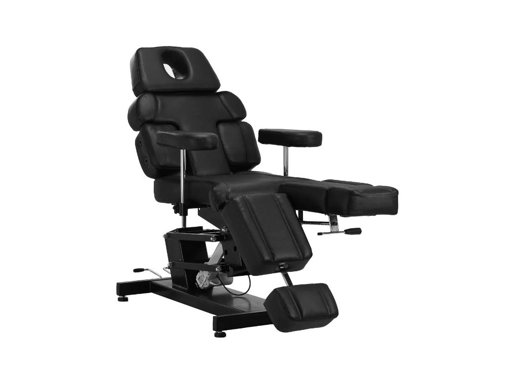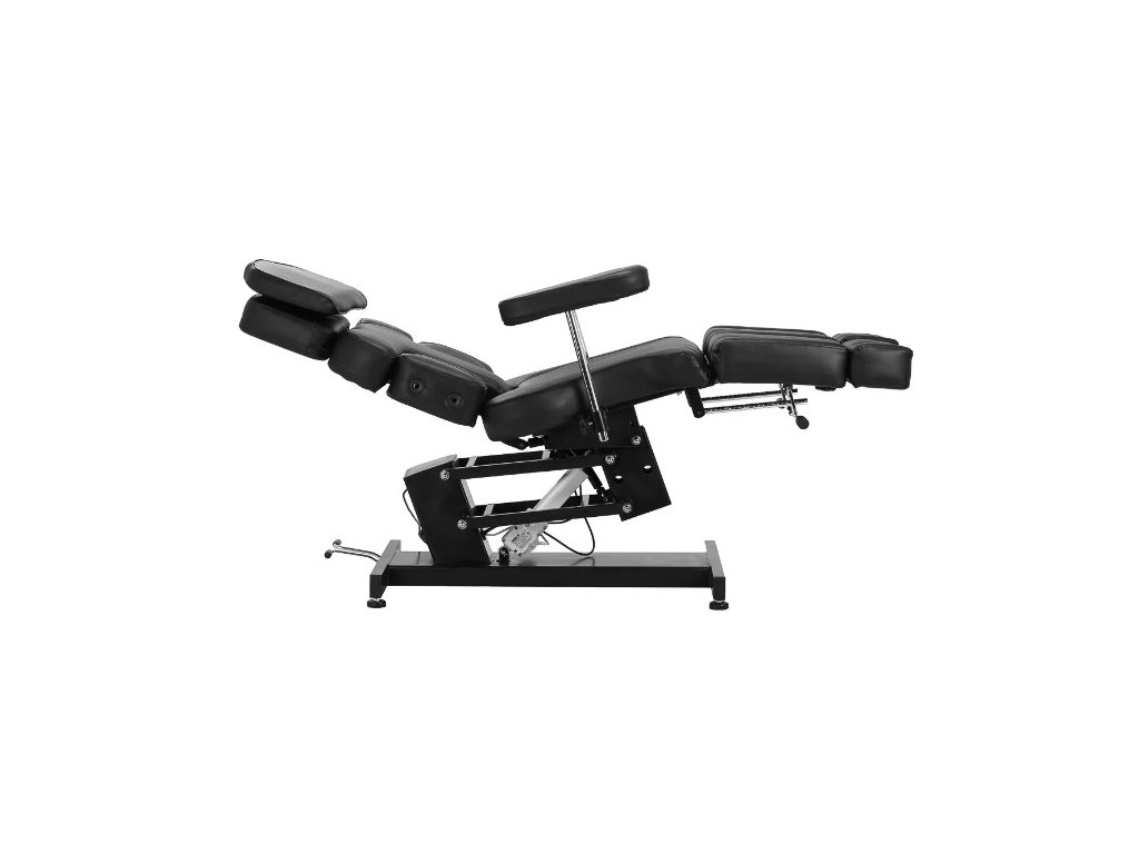 Díky jednoduchému vzhledu a klasickým barvám je křeslo ideální pro každý tetovací salon, díky čemuž je výkon služeb mnohem efektivnější. Pomáhá jak tetované osobě, tak umělci zaujmout pohodlnou polohu. Pěnová výplň odolná proti deformaci, potah je vyroben ze syntetické kůže příjemné na dotek v odstínech černé a stabilní kovový rám zajišťují odolnost, stabilitu a snadné čištění.
