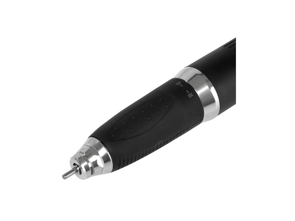 Zahrnuto: Základna frézky s přepínacím ovládáním, hlava, napájecí zdroj, silikonový stojan na hlavu, nástroj pro demontáž frézy, manuál.