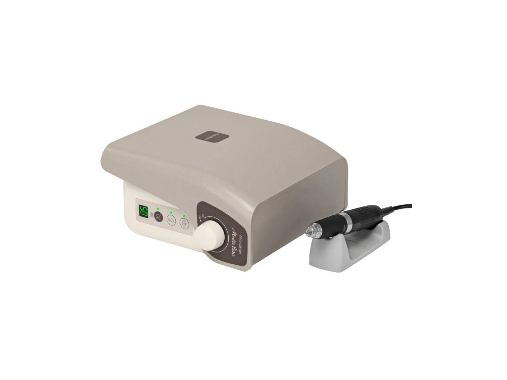 Otočný knoflík umožňuje nastavit rychlost hlavy až na 50 000 otáček za minutu a aktuální rychlost je zobrazena na digitálním displeji. Umožňuje efektivní přizpůsobení individuálním potřebám, a tím i pohodlné provádění široké škály procedur. Rychlost se zobrazuje na digitálním displeji. Tlačítka umožňují rychle přepnout na nožní pohon, změnit směr otáčení a zastavit provoz zařízení (funkce pauzy), což vám dává plnou kontrolu nad frézkou a usnadňuje přizpůsobení jejího provozu prováděným službám. LED indikátory indikují stav zařízení, směr otáčení, aktivaci nožního pohonu, aktivaci funkce tempomatu a pauzu. Obsluha zařízení je jednoduchá, efektivní a intuitivní, což jistě ocení náročnější uživatelé.