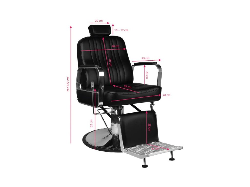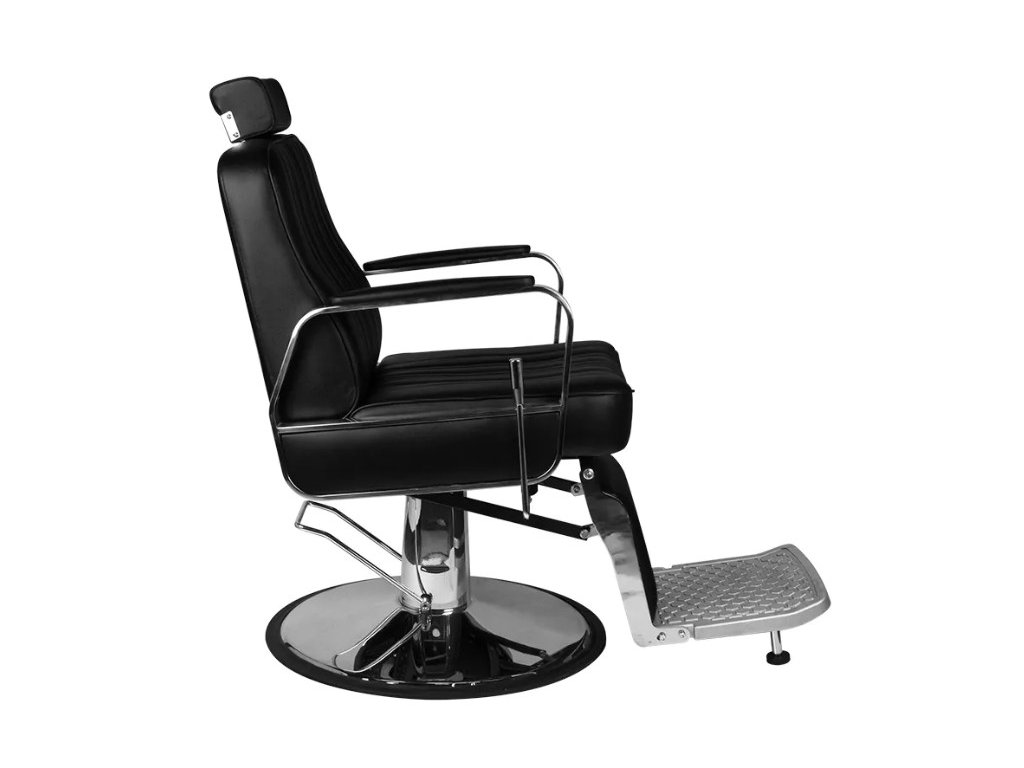Novinkou v naší nabídce je barberské křeslo PATRIZIO. Jedná se o moderní, dokonale zpracovaný, úsporný kus nábytku. Klientce salonu poskytuje maximální pocit pohodlí během procedur. Kromě nastavení nahoru a dolů má židle sklopné opěradlo. I přes své malé rozměry je možné zákazníka umístit do pohodlné, polovleže polohy. Pohodlné sedadlo je potaženo vysoce kvalitní ekokůží. Široká základna zaručuje stabilitu nábytku při práci. Další výhodou je možnost snadného nastavení opěrky hlavy. Nábytek v černé barvě.