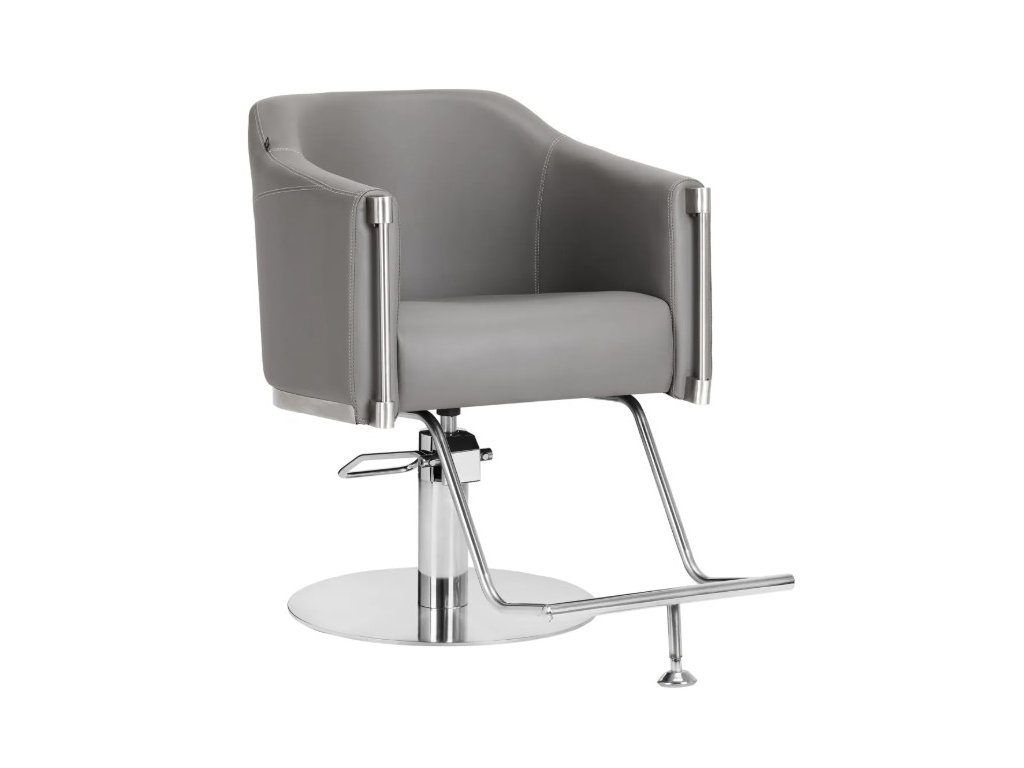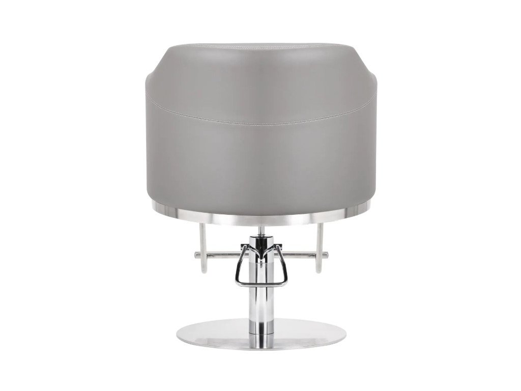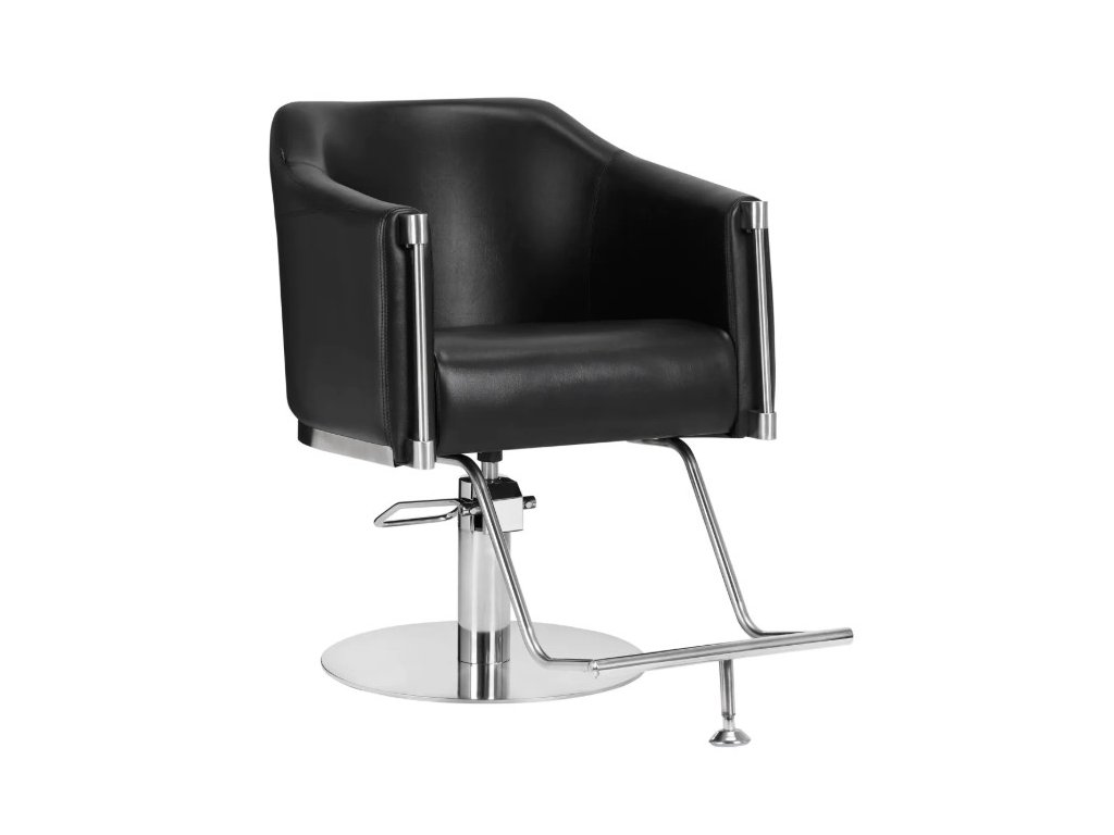 Robustní, kulatá základna zajišťuje stabilitu během používání. Díky hladkému povrchu se tento prvek snadno udržuje v čistotě. Široké sedadlo, vyplněné pěnou přiměřené tvrdosti, zaručuje vysoký komfort používání a pohodlí i při mnohahodinovém ošetření. Područky jsou umístěny ve výšce, která umožňuje správnou polohu ramen klienta – to znamená, že nezaboří hlavu do ramen ani se nehrbí – což výrazně zlepšuje ošetření, včetně stříhání. To usnadňuje přesné provádění služeb.