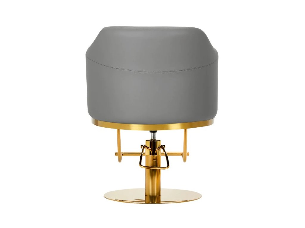 Robustní, kulatá základna zajišťuje stabilitu během používání. Díky hladkému povrchu se tento prvek snadno udržuje v čistotě. Široké sedadlo, vyplněné pěnou přiměřené tvrdosti, zaručuje vysoký komfort používání a pohodlí i při mnohahodinovém ošetření. Područky jsou umístěny ve výšce, která umožňuje správnou polohu ramen klienta – to znamená, že nezaboří hlavu do ramen ani se nehrbí – což výrazně zlepšuje ošetření, včetně stříhání. To usnadňuje přesné provádění služeb.