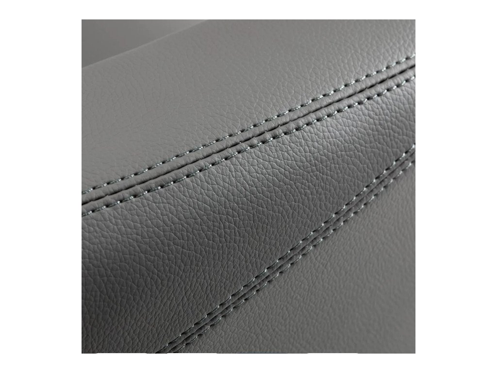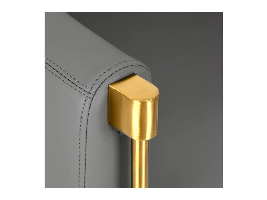 Křeslo je vyplněno pěnou, která je odolná a nedeformuje se, což zajišťuje pohodlné používání po dlouhou dobu. Čalounění je vyrobeno z na dotek příjemné imitace kůže se specifickou strukturou. Díky použití tohoto materiálu je zařízení odolné vůči vlhkosti, trvanlivé a snadno se čistí. Šedá povrchová úprava a dekorativní kovové povrchy lakované zlatem mu dodávají výraz nadčasové elegance. Díky výrazné klasické povrchové úpravě vypadá skvěle téměř v každém prostoru.