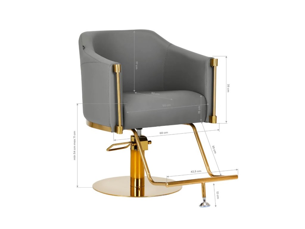 Kadeřnické křeslo Gabbiano Burgos vybavené hydraulickým zdvihem je praktickým kusem nábytku, který se stane ozdobou vašeho kadeřnického salonu. Klasické barvy, speciální podnožka a dekorativní prvky ve zlatých odstínech mu dodávají elegantní vzhled. Vysoká funkčnost zajistí pohodlí jak pro kadeřníky, tak pro jejich uživatele.
