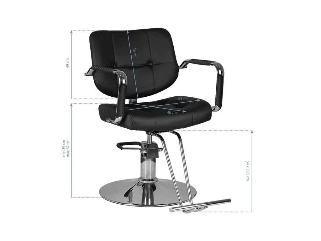 Moderní kadeřnické křeslo s moderním designem. Velmi pohodlné, dokonale se hodí do moderních kadeřnických salónů. . Speciálně tvarované tak, aby poskytovaly klientovi pohodlnou polohu během ošetření. Nastavitelné ve svislé rovině. Velmi stabilní a robustní. Čalounění z kvalitní ekokůže. Černý.
