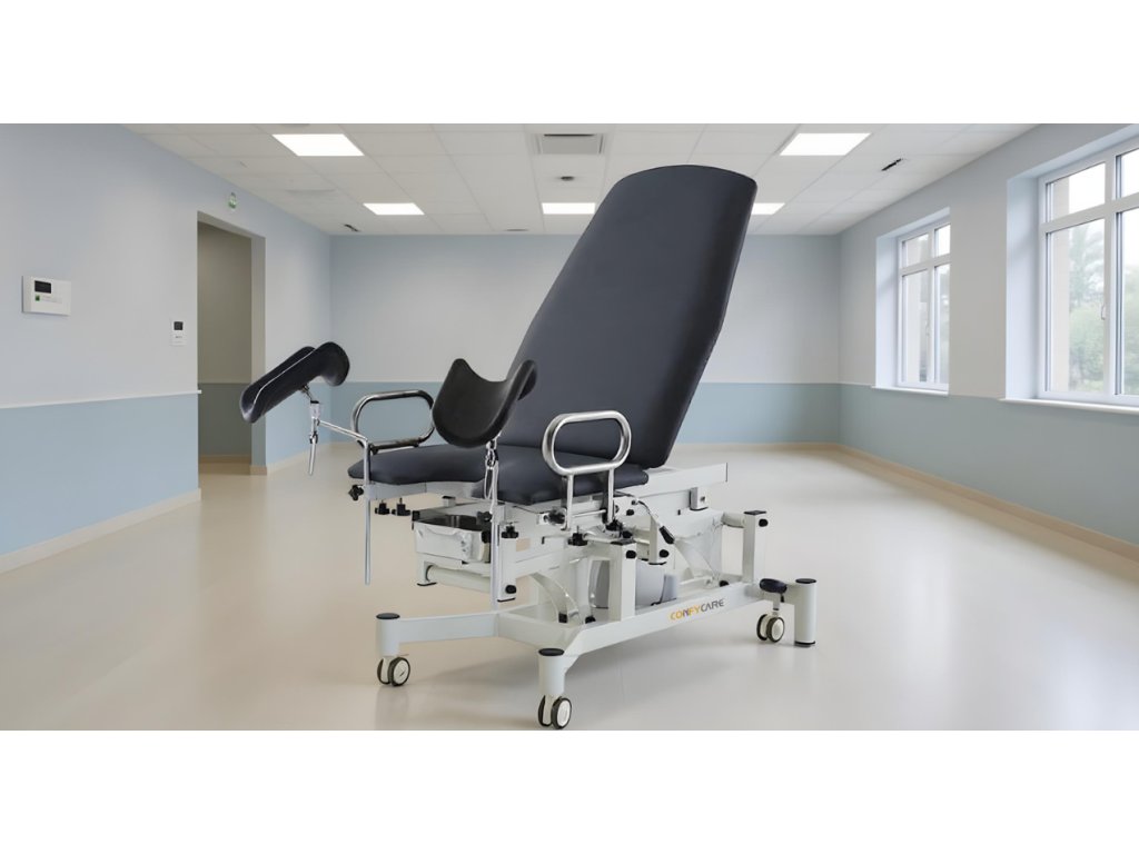 Elektrické gynekologické křeslo pro běžná vyšetření, nezbytné v každé klinice, zdravotním středisku nebo nemocnici díky kombinaci pohodlí, všestrannosti a odolnosti. Vybaveno 2 motory pro nastavení výšky a sklonu sedáku, což zajišťuje optimální manévrovatelnost a lepší péči o pacienty. Čalouněné vysoce odolným šedým PVC lékařské kvality, odolné vůči ohni, skvrnám, plísním a opotřebení, snadno se čistí.