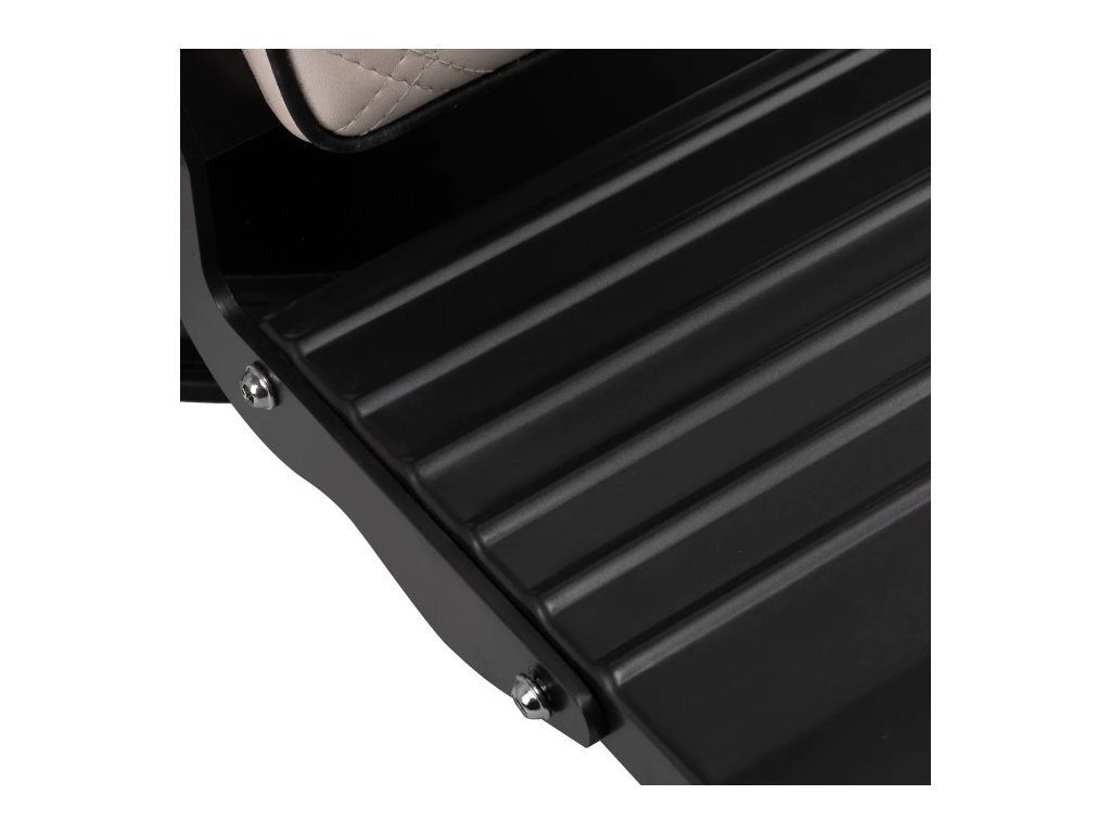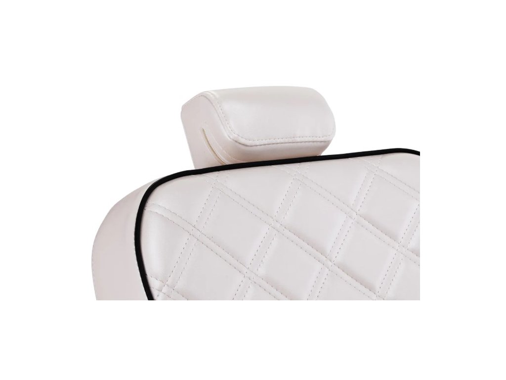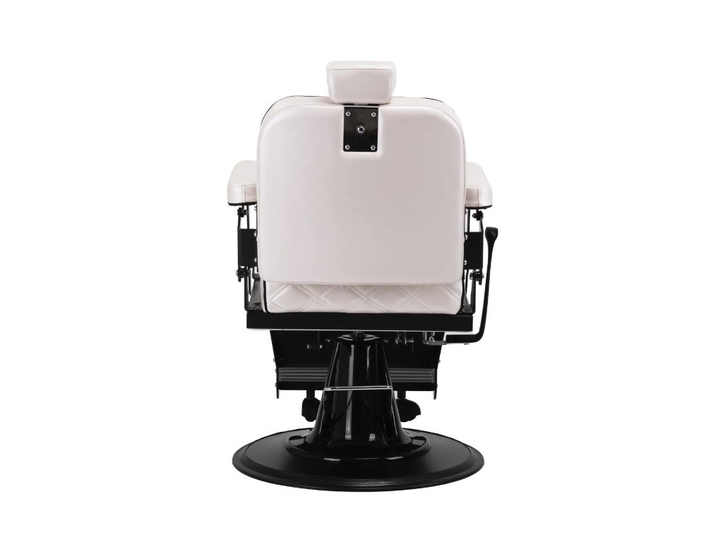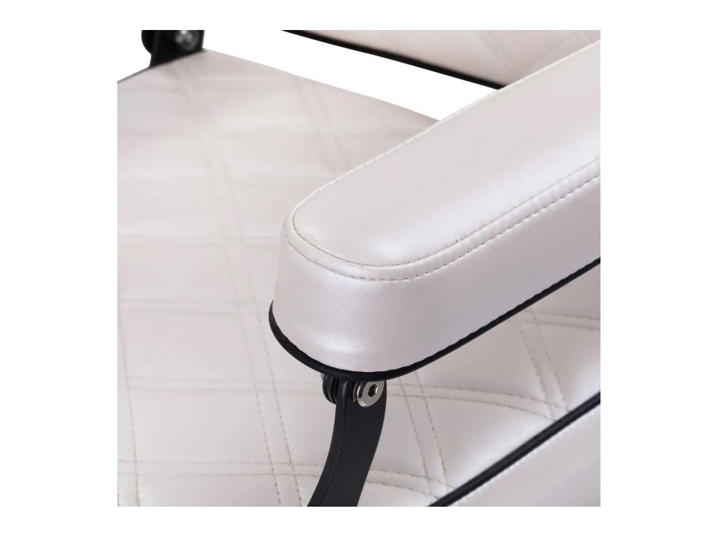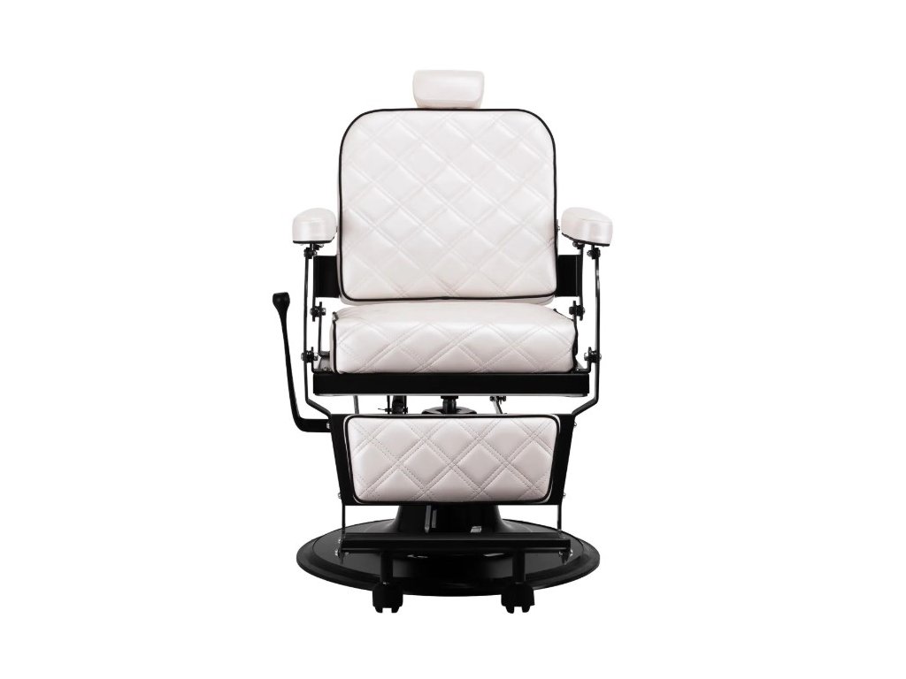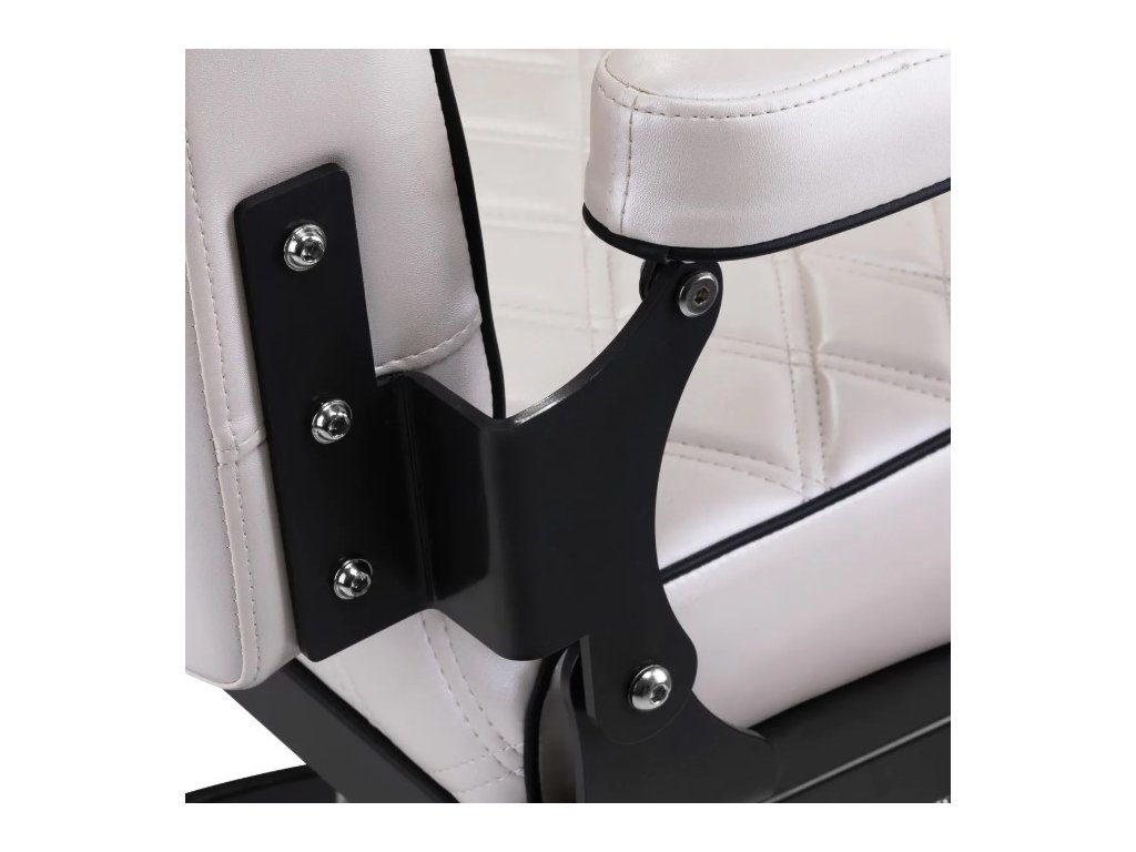 Pevná základna zajišťuje stabilitu a vysoký komfort používání. Výplň sedáku z pěny odolné proti deformaci a čalounění z na dotek příjemné syntetické kůže s perleťovou povrchovou úpravou zajišťují odolnost nábytku a pohodlné používání po dlouhou dobu. Tyto materiály jsou odolné proti vlhkosti, odolné proti opotřebení a snadno se čistí. Krémový odstín čalounění dodává křeslu jedinečný charakter a jeho elegantní styl dokonale ladí s dekorem holičských salonů.