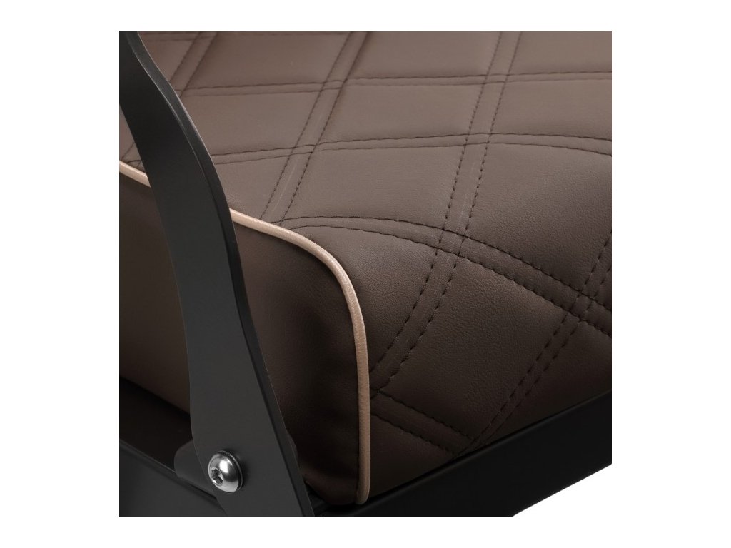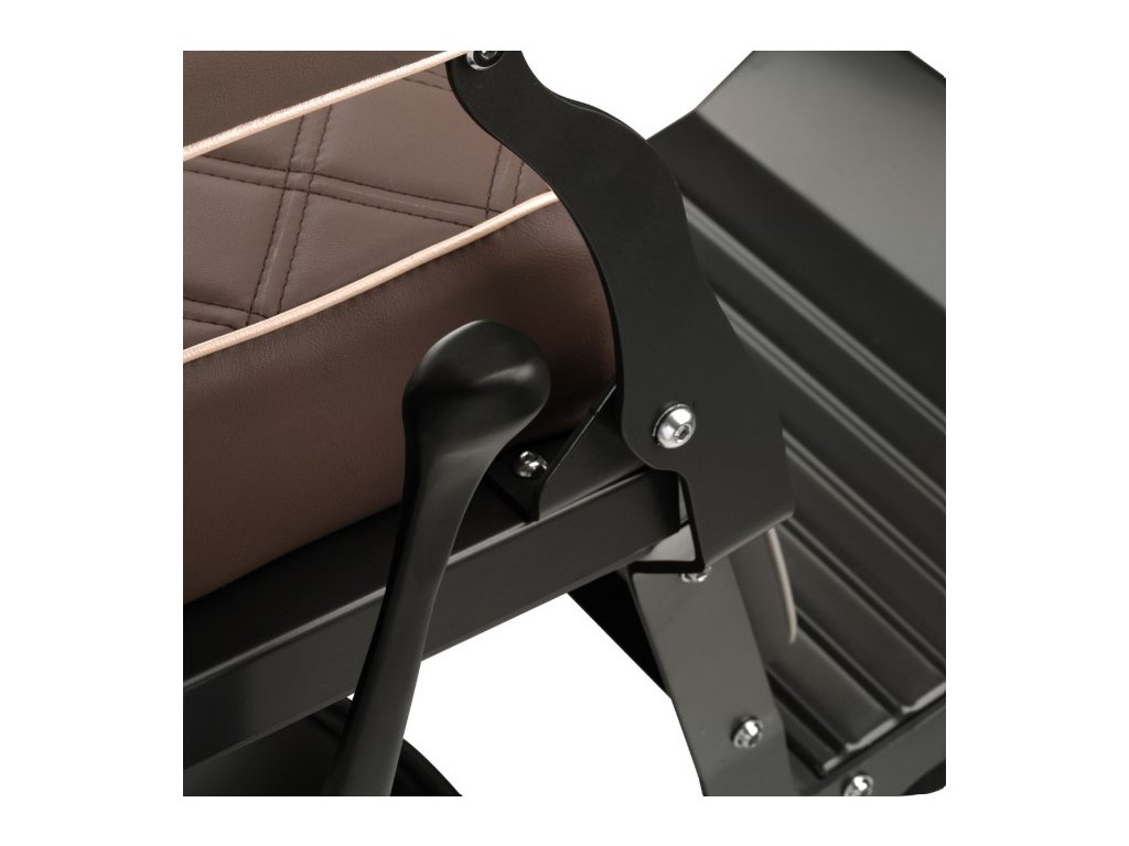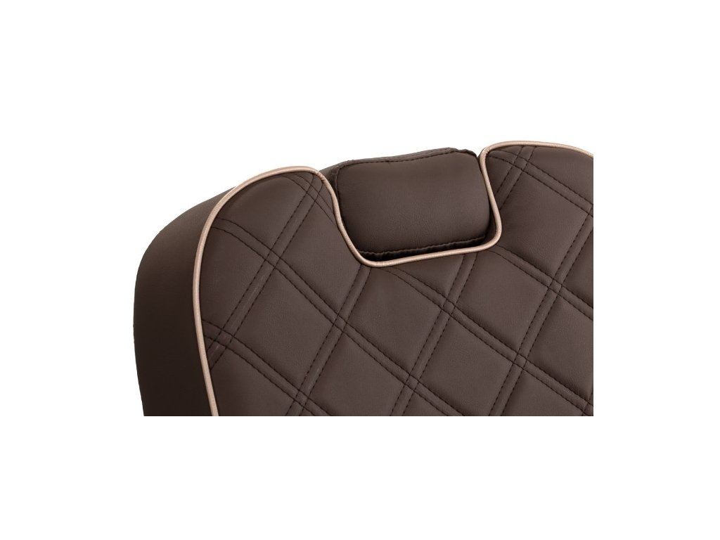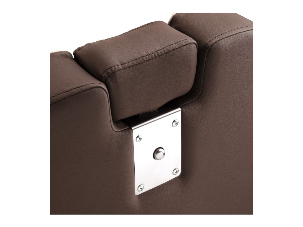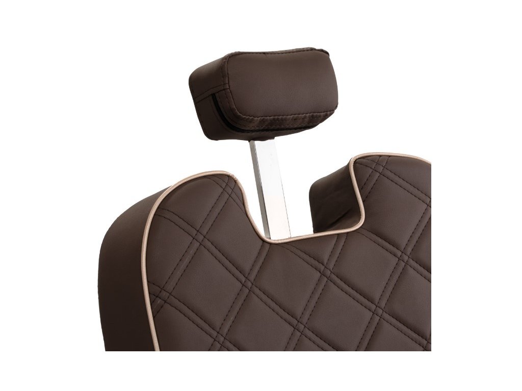 Pevná konstrukce zajišťuje stabilitu a vysoký komfort používání. Sedák je vyplněn pěnou odolnou proti deformacím a čalounění z měkké, matné syntetické kůže dodává nábytku odolnost a pohodlí. Materiály odolné proti vlhkosti jsou nejen trvanlivé, ale také se snadno čistí. Hnědý odstín čalounění dodává křeslu jedinečný charakter a jeho elegantní styl se dokonale hodí k dekoru každého holičského salonu.