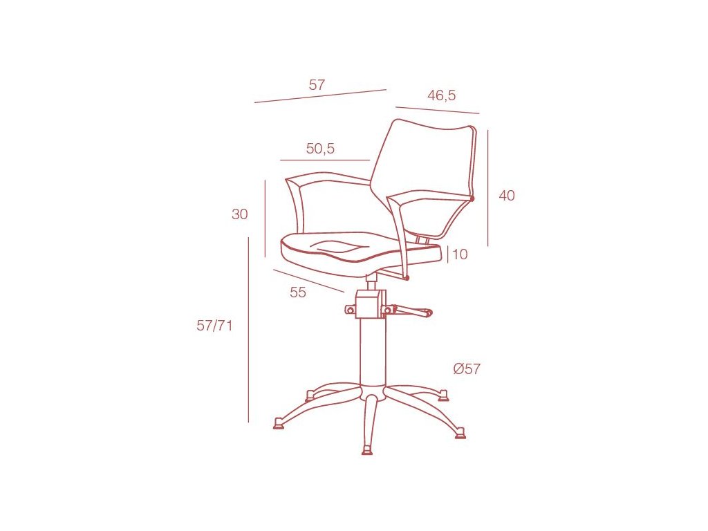Stylová židle s chromovanými područkami a hvězdicovou základnou.