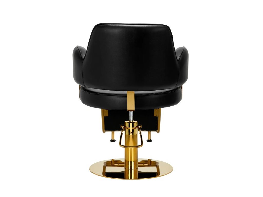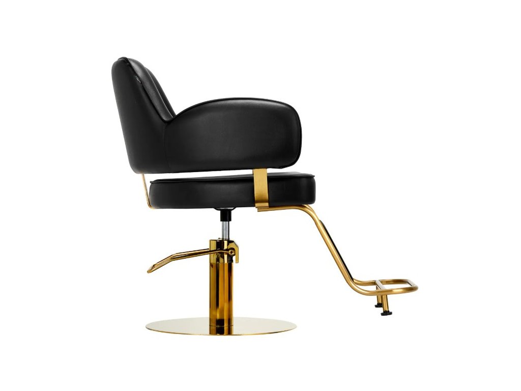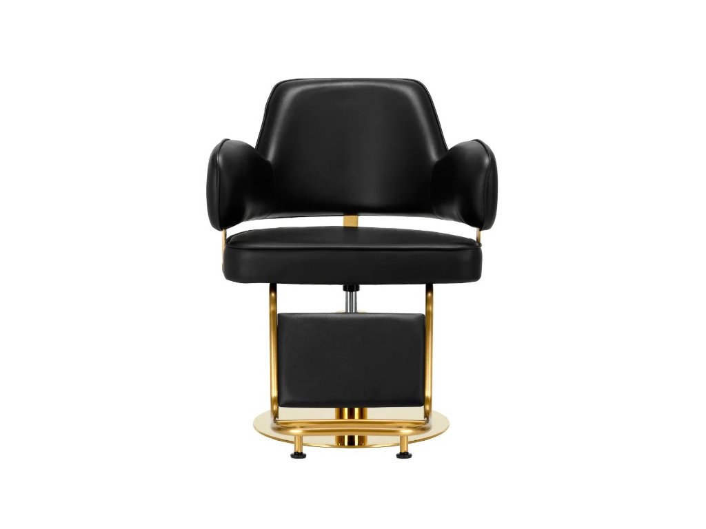Pevná, plochá základna ve tvaru kruhu zaručuje stabilitu během používání. Hladký povrch se zrcadlovým povrchem usnadňuje udržování tohoto kusu v čistotě. Široké sedadlo s pěnovou výplní zajišťuje vysoký komfort používání a pohodlí i při dlouhých hodinách procedur. Vybavení křesla mechanismem plného otáčení zefektivňuje a zpříjemňuje práci kadeřníka. Významným plusem je opěrka nohou určená pro tento model, která poskytuje stabilní oporu pro nohy uživatele, a dekorativní panel dodává stylový vzhled. Područky jsou umístěny ve správné výšce, díky čemuž umožňují správnou polohu ramen klienta – to znamená, že neskrývají hlavu v ramenou ani se nehrbí – což výrazně usnadňuje provádění přesných ošetření, včetně stříhání.