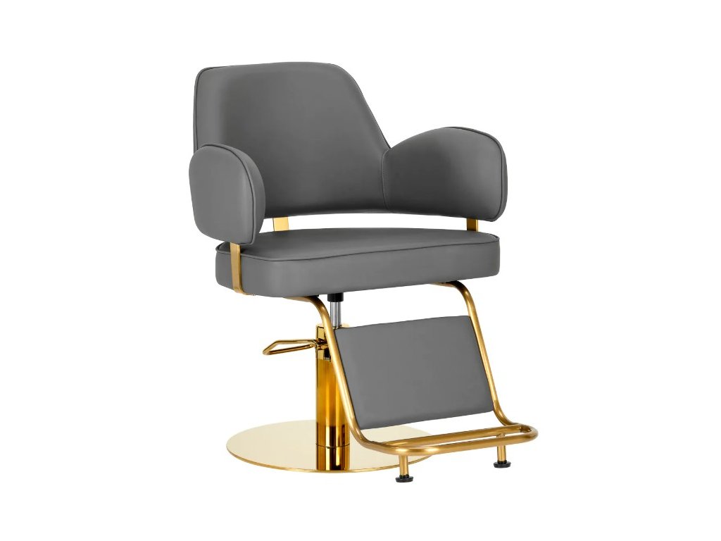 Pohodlný kus nábytku je vyplněn odolnou pěnou odolnou proti deformaci, zatímco čalounění je vyrobeno ze syntetické kůže, která je příjemná na dotek. Použité materiály zajišťují pohodlné používání nábytku po dlouhou dobu a činí zařízení odolným proti vlhkosti, trvanlivým a snadno se čistí. Šedý kryt a dekorativní prvky ve zlatých tónech mu dodávají výraz nadčasové elegance. Kadeřnické křeslo Gabbiano Linz NQ se vyznačuje minimalistickým designem, který mu dodává jedinečný charakter a díky němu vypadá skvěle v mnoha elegantních salonech.
