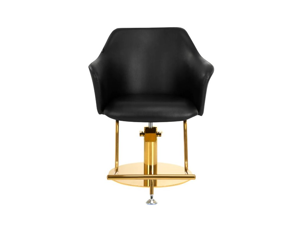 Kulatá, pevná základna zaručuje stabilitu během používání. Hladký povrch se zrcadlovým povrchem dodává prvku elegantní vzhled a usnadňuje jeho čištění. Pohodlné sedadlo s pěnovou výplní zajišťuje vysoký komfort používání, a to i během dlouhých hodin procedur. Významným plusem je opěrka nohou ve zlatých odstínech věnovaná tomuto modelu, která poskytuje stabilní oporu pro nohy uživatele a dodává nábytku stylový vzhled. Područky umožňují správnou polohu ramen klienta – to znamená, že nezaboří hlavu do ramen ani se nehrbí – což výrazně usnadňuje provádění přesných zákroků, jako je stříhání vlasů.