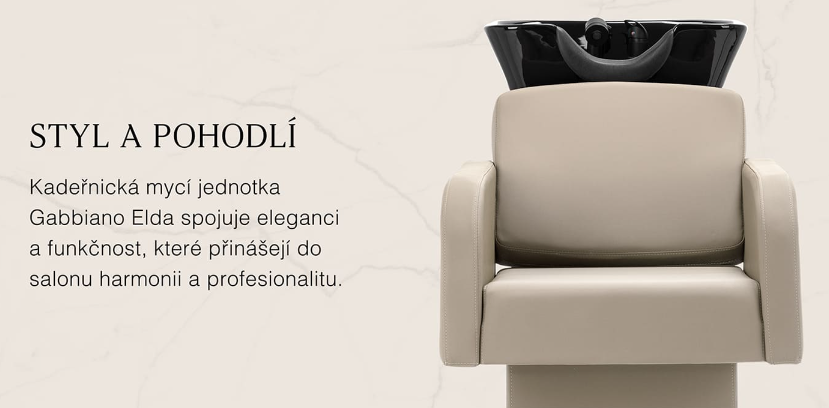 Elegantní mycí jednotka na vlasy Gabbiano Elda kombinuje funkčnost s moderním designem. Usnadňuje efektivní provádění základních ošetření – od předmytí, přes barvení až po regeneraci vlasů. Její promyšlený design zajišťuje pohodlí jak pro kadeřníky, tak pro klienty, zatímco stylový design, elegantní linie a moderní tvar mísy dodávají interiéru jedinečný charakter, zdůrazňují profesionalitu salonu a zajišťují příjemný zážitek pro zákazníky.