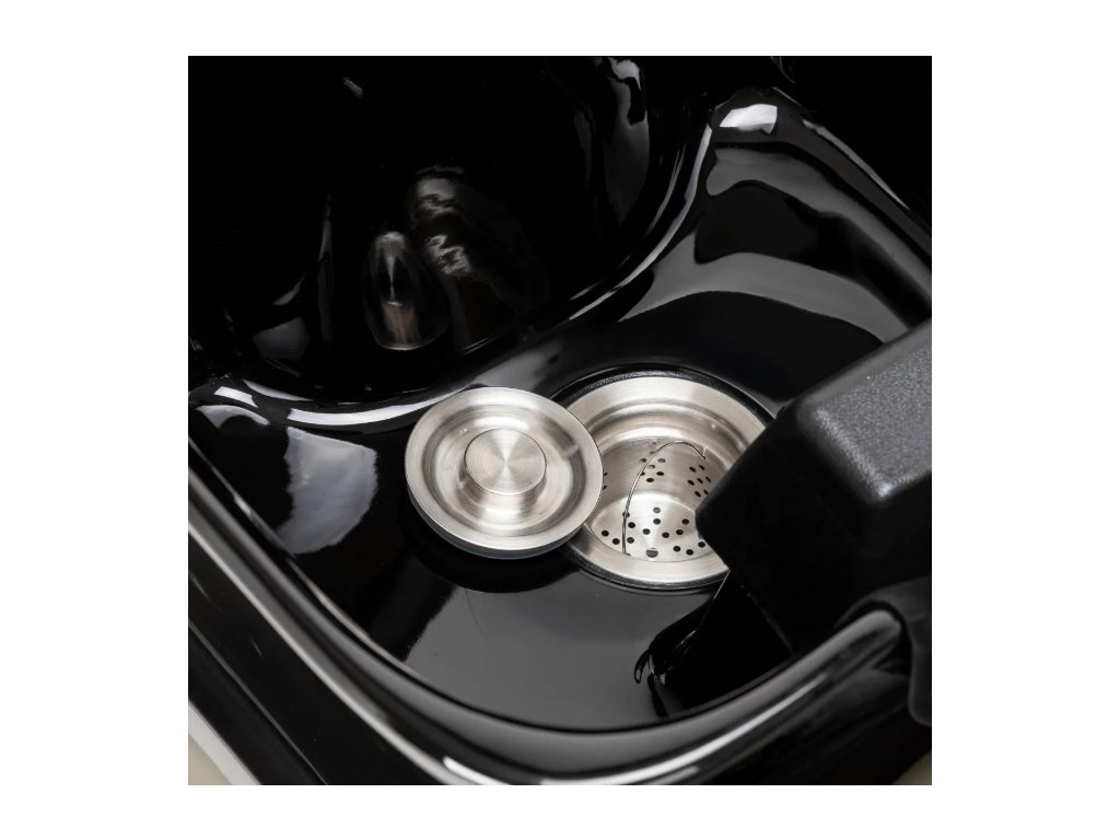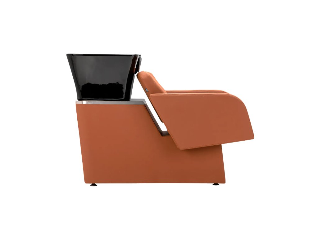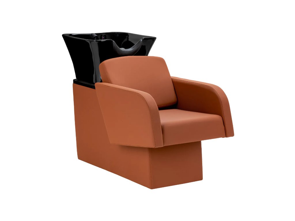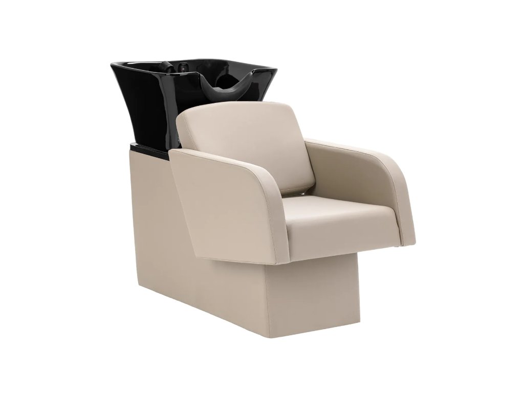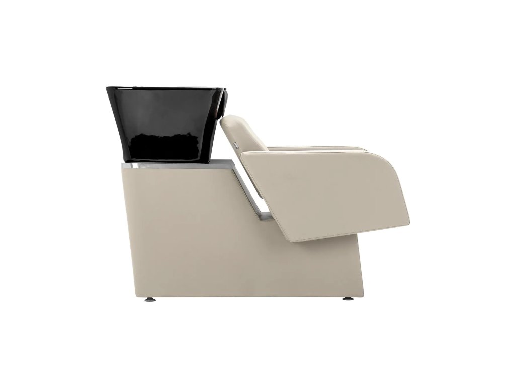 Černá keramická mísa dřezu s moderním tvarem a vhodnou hloubkou účinně zabraňuje stříkání vody a produktů používaných během ošetření, což umožňuje pohodlné a efektivní provádění široké škály služeb . Tvarovaný límec a šikmé opěradlo poskytují pohodlí a oporu při mytí vlasů , zatímco černý plastový kryt chrání klienta před studeným keramickým povrchem a zajišťuje příjemný zážitek během ošetření.