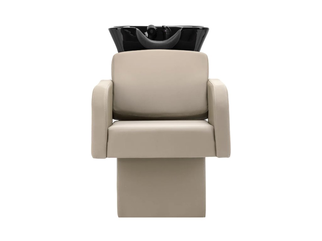 Kadeřnická mycí stanice Gabbiano Elda kombinuje pohodlí, estetiku a funkčnost a dokonale splňuje potřeby moderních kadeřnických salonů. Dobře tvarované sedátko vyplněné odolnou a pružnou pěnou zaručuje stabilní bederní oporu a vysoké pohodlí i při delších ošetřeních. Loketní opěrky umožňují správnou polohu ramen a podporují relaxaci klienta. Čalounění z příjemné syntetické kůže v elegantních odstínech šedé a béžové je vysoce odolné proti opotřebení, snadno se čistí a má estetickou úpravu , která zdůrazňuje profesionální charakter nábytku. Sada obsahuje kompletní sadu armatur v odstínech černé, včetně baterie, sprchové hlavice a specializovaných hadic, což poskytuje kompletní sadu nástrojů pro danou práci .