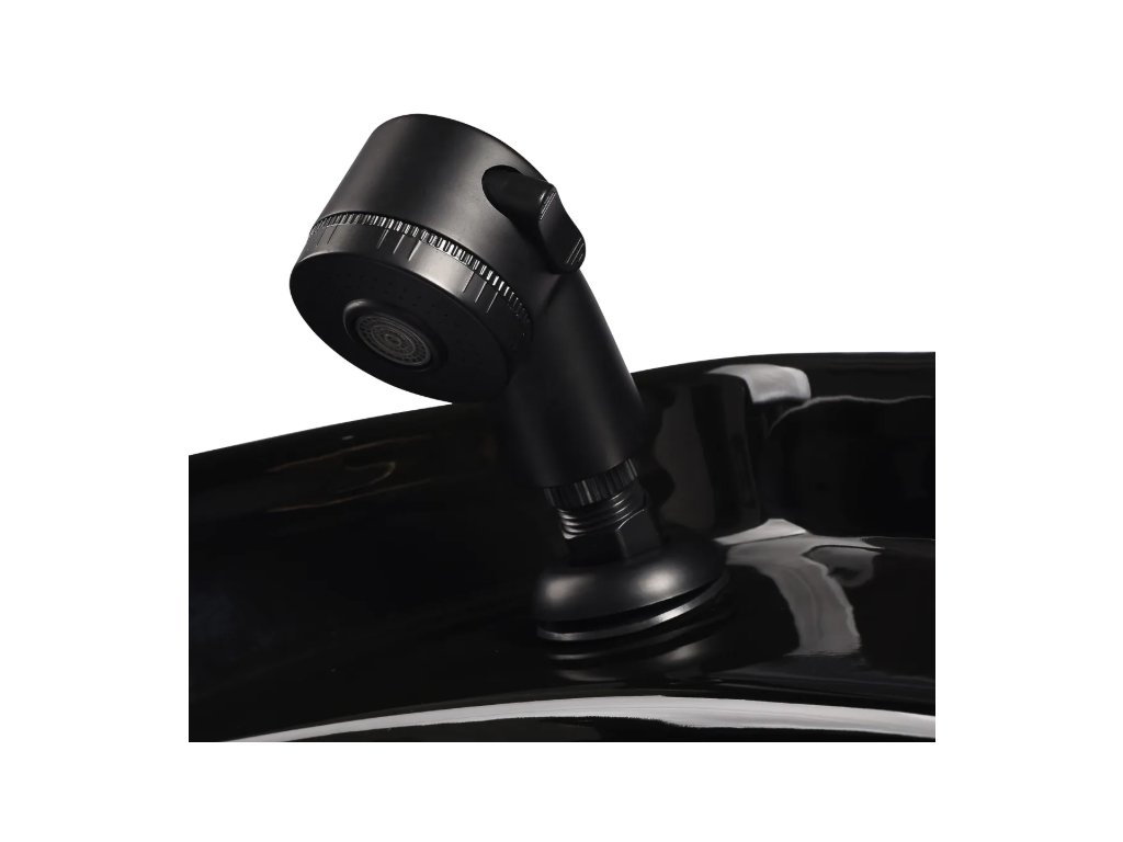 Dostatečná hloubka bílého keramického umyvadla zabraňuje nadměrnému rozstřikování vody nebo přípravků používaných při ošetření. To umožňuje pohodlné a efektivní provádění široké škály služeb. Úhel mísy lze nastavit, což usnadňuje její přizpůsobení. Díky vysoké kvalitě použitých materiálů je mísa odolná, odolná proti skvrnám a poškrábání a velmi snadno se čistí. Vhodně tvarovaná příruba a šikmá opěrka poskytují oporu a pohodlí při mytí vlasů a díky komfortnímu plastovému překrytí v odstínech černé barvy nebude zákazníkovi nepříjemný chlad keramického povrchu.