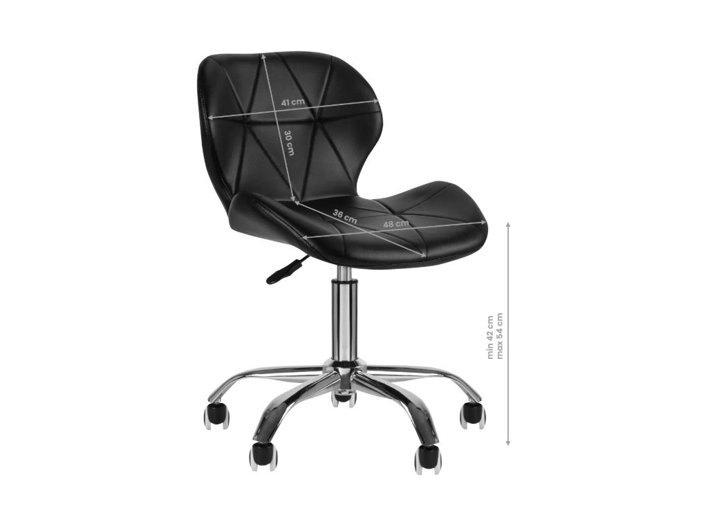 Účinný plynový zdvih umožňuje snadné nastavení výšky sedadla v rozmezí 42-54 cm. To vám umožní přizpůsobit židli vašim individuálním potřebám a službám a zajistit vysoký komfort používání – jak při nanášení make-upu, úpravě obočí, tak při dalších aktivitách. Tvarované opěradlo poskytuje dostatečnou oporu zad. Židle je vybavena plně otočným mechanismem, který zvyšuje efektivitu a pohodlí při práci.