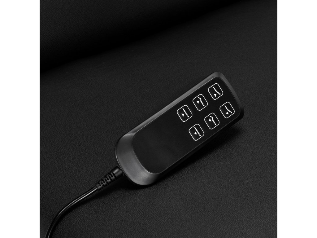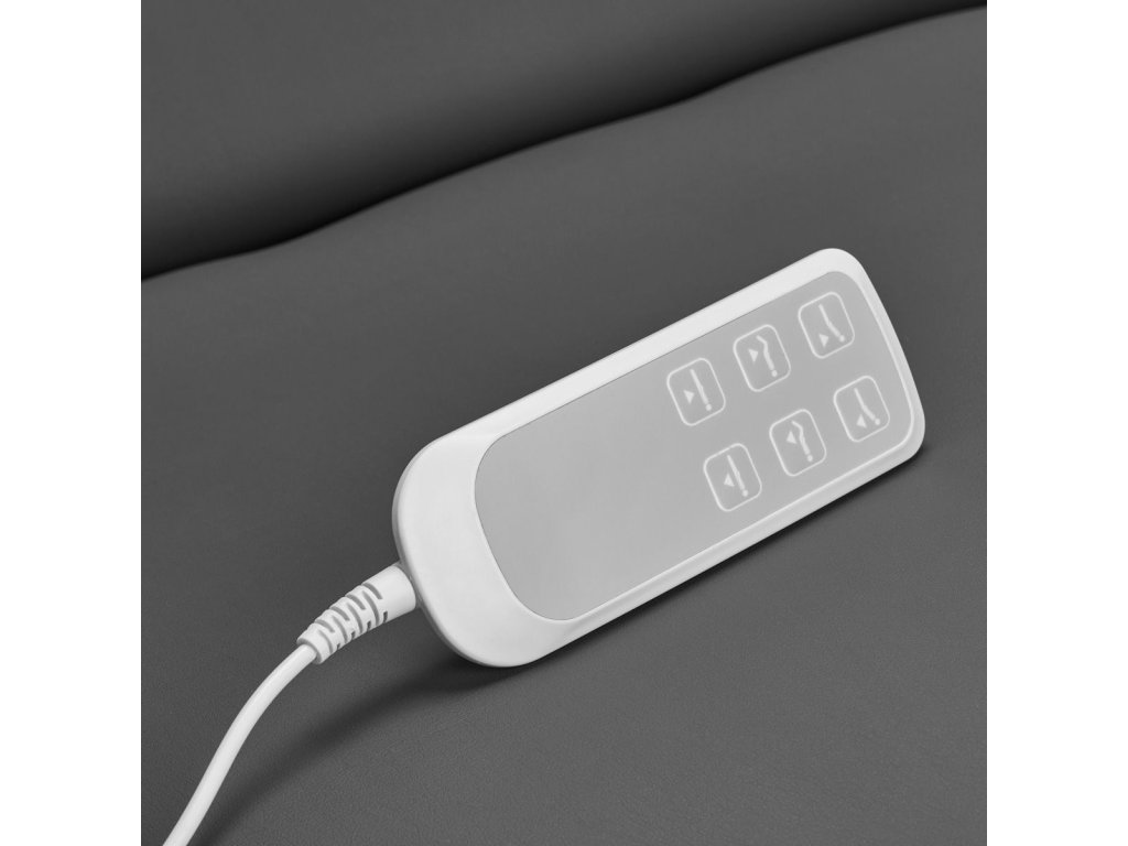 Pomocí snadno ovladatelného dálkového ovladače snadno nastavíte křeslo ve třech rozměrech - má nastavení výšky, opěradla a kolébky. Ruční páka navíc umožňuje nastavit úhel opěrky nohou. Díky tomu můžete křeslo plynule nastavit do pohodlné polohy na gauči, což vám umožní pohodlně provádět ošetření obličeje a těla. Po úplném rozložení navíc dosahuje délky přes 2,3 metru, takže je vynikající oporou pro vyšší uživatele. Na pravé straně sedačky je speciální kovový držák pro zavěšení dálkového ovladače. Díky tomu se snadno skladuje a bude vždy po ruce.