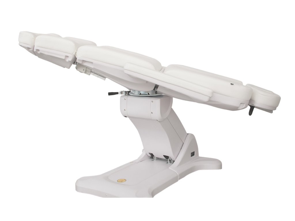 Elektrické kosmetické křeslo se 4 motory. Lze ovládat výšku křesla, zádové opěradlo, nožní podnožku a sklon sedáku kosmetického křesla