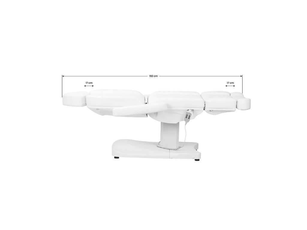 Elektrické kosmetické křeslo Azzurro 803D je vybaveno 3 pohony, které se ovládají kabelovým dálkovým ovladačem nebo přiloženým nožním pohonem. Vyznačuje se stabilitou, významnou možností individualizace a všestranností, takže je ideální pro mnoho specializovaných kanceláří.