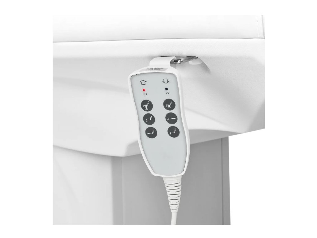 Pomocí jednoduchého a intuitivního dálkového ovladače lze židli plynule nastavit ve třech rovinách – má nastavitelnou výšku sedáku a sklon opěradla a opěrky nohou. To vám umožní libovolně nastavit polohu podle prováděného ošetření v daném čase, což ovlivňuje jak pohodlí uživatele, tak osoby vykonávající služby. Rozměry a šířka úpravy umožňují snadné použití zařízení pro osoby různých výšek a usnadňují jeho přizpůsobení potřebám jak klienta, tak osoby provádějící zákrok.
