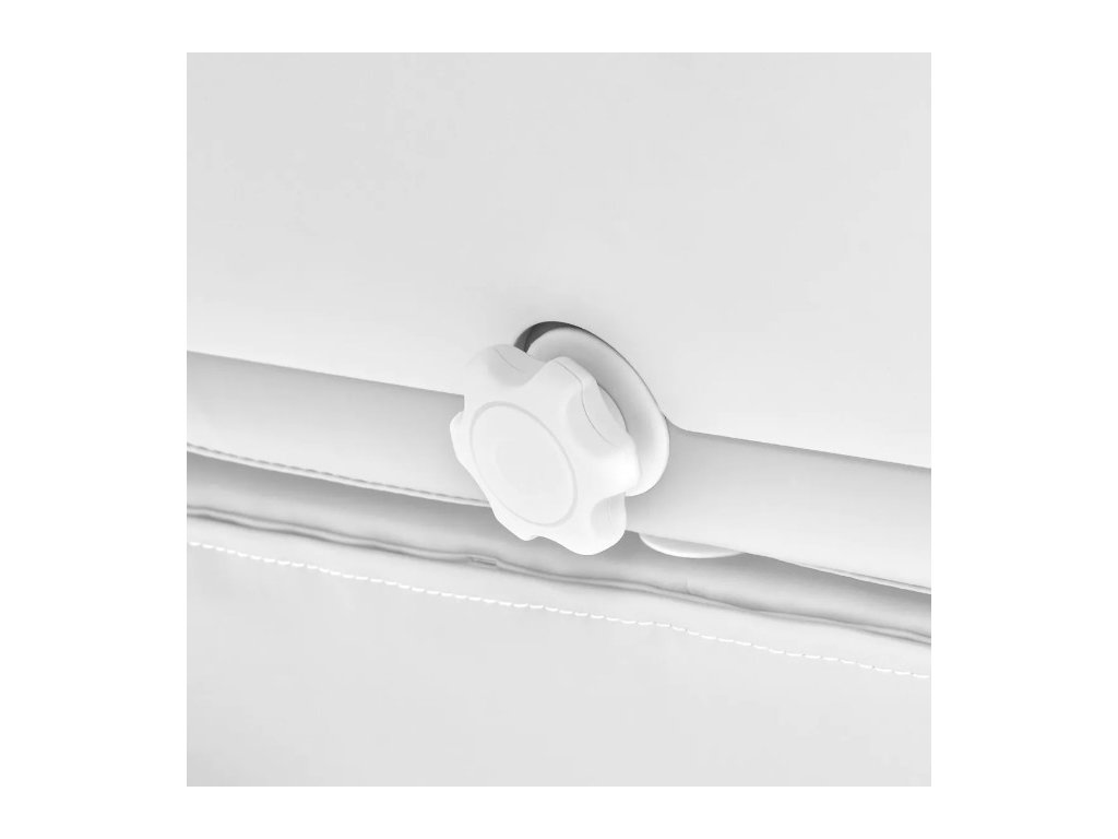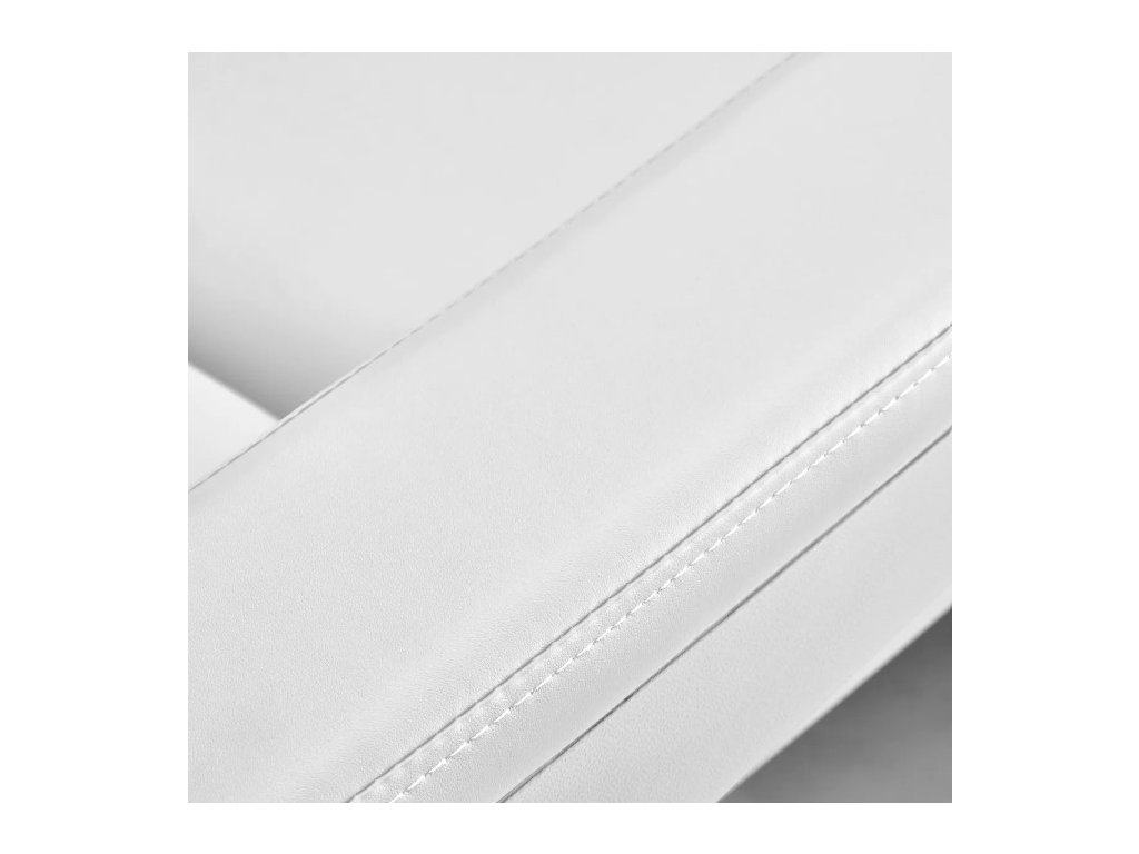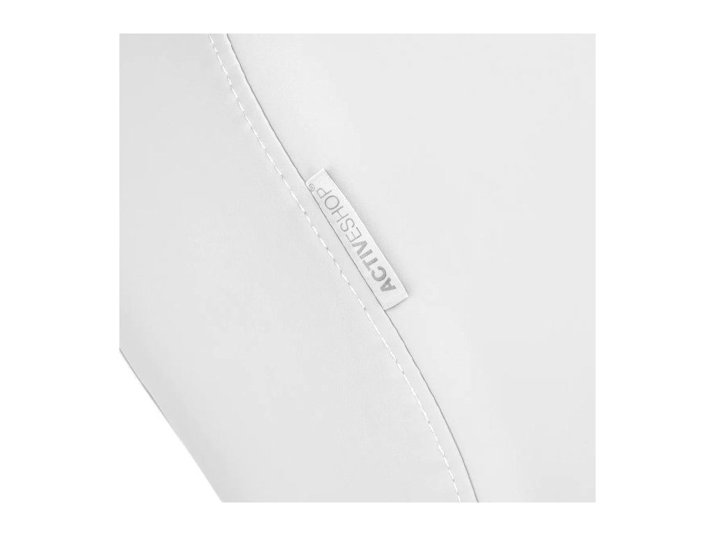 Křeslo je vyplněno pěnou odpovídající tvrdosti a potaženo na dotek příjemnou imitací kůže v odstínech bílé. Díky použití materiálu, který se snadno udržuje v čistotě a je odolný vůči vybraným dezinfekčním prostředkům, se zařízení pohodlně používá, je odolné vůči vlhkosti a snadno se čistí. Pevná základna vyrobená z odolného materiálu v odstínech bílé zajišťuje stabilitu během ošetření. Správně profilované lemy dodávají křeslu stylový vzhled a dodávají sedáku ergonomický vzhled.