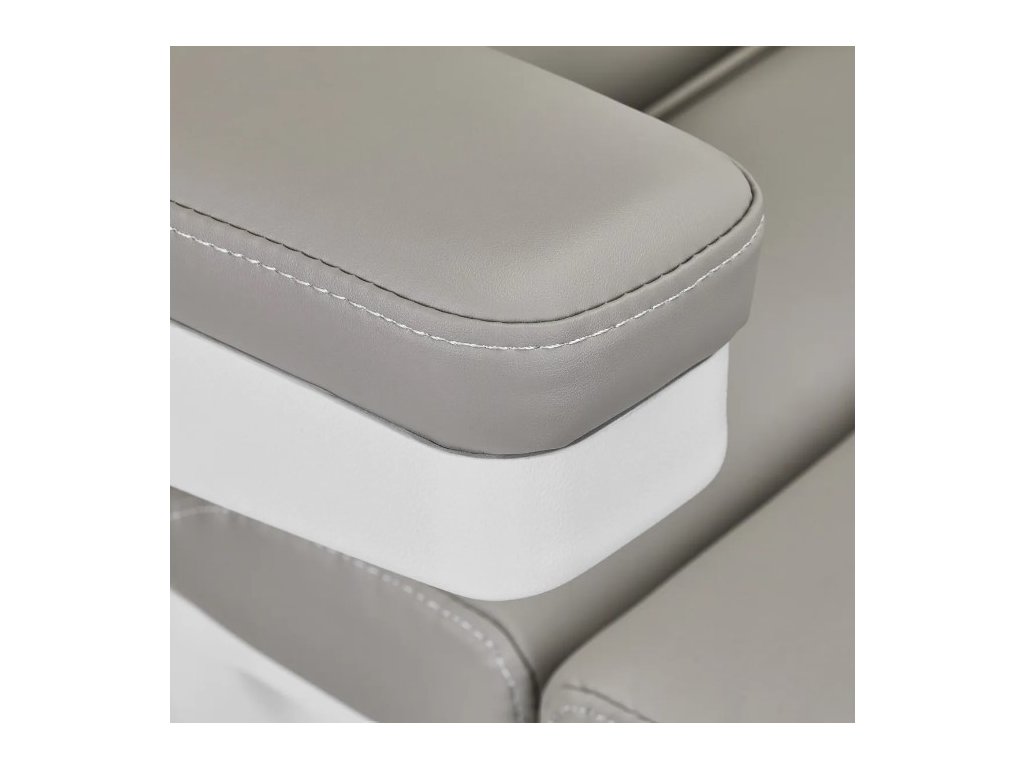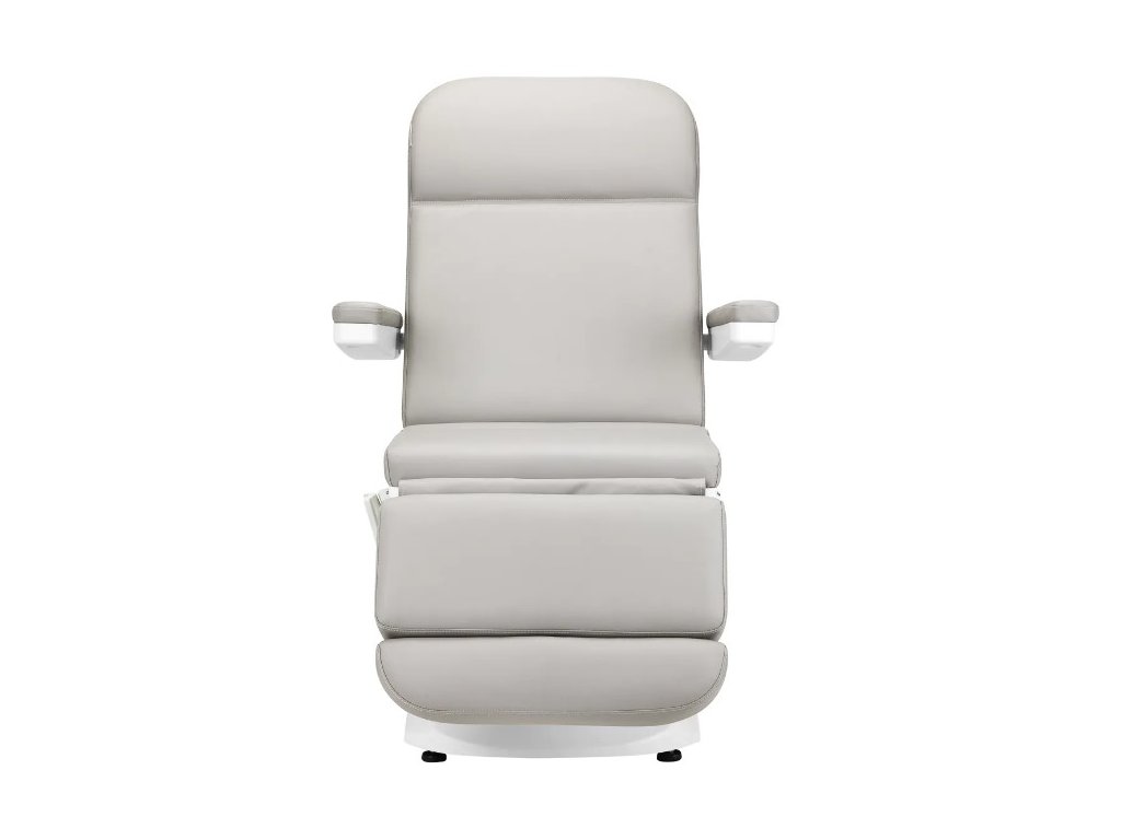 Křeslo je vyplněno pěnou odpovídající tvrdosti a potaženo na dotek příjemnou imitací kůže v odstínech šedé. Díky použití materiálu, který se snadno udržuje v čistotě a je odolný vůči vybraným dezinfekčním prostředkům, se zařízení pohodlně používá, je odolné vůči vlhkosti a snadno se čistí. Pevná základna vyrobená z odolného materiálu v odstínech bílé zajišťuje stabilitu během ošetření. Správně profilované lemy dodávají křeslu stylový vzhled a dodávají sedáku ergonomický vzhled.