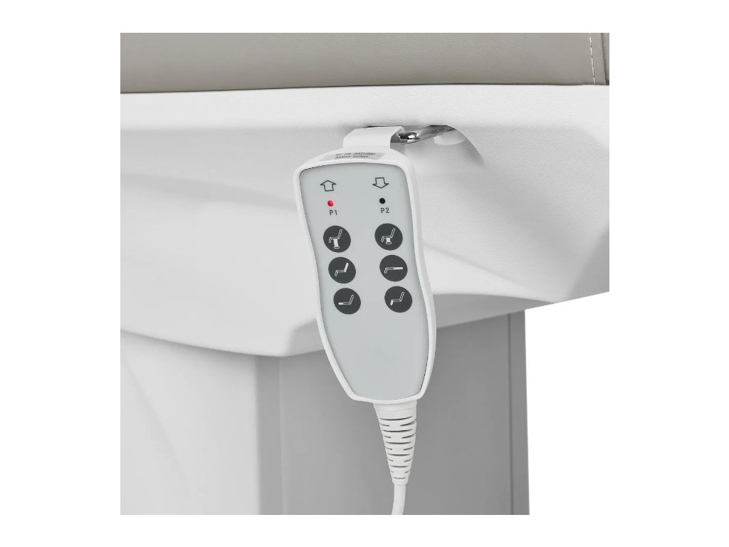 Pomocí jednoduchého a intuitivního dálkového ovladače lze židli plynule nastavit ve třech rovinách – má nastavitelnou výšku sedáku a sklon opěradla a opěrky nohou. To vám umožní libovolně nastavit polohu podle prováděného ošetření v daném čase, což ovlivňuje jak pohodlí uživatele, tak osoby vykonávající služby. Rozměry a šířka úpravy umožňují snadné použití zařízení pro osoby různých výšek a usnadňují jeho přizpůsobení potřebám jak klienta, tak osoby provádějící zákrok.