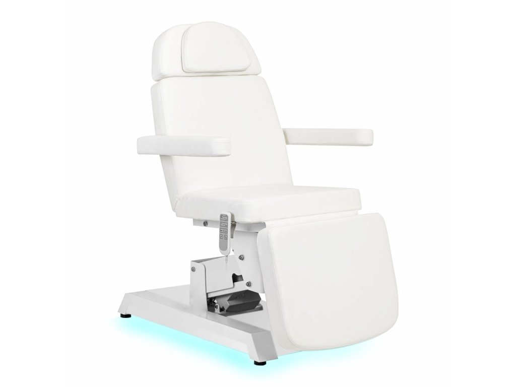 Profesionální elektrické kosmetické křeslo EXPERT je ideální pro kosmetické salony a SPA salony. Díky nezávislým motorům umožňuje nastavit křeslo ve 4 rovinách pomocí dálkového ovládání, čímž získáte možnost provádět ošetření obličeje a těla. Pomocí dálkového ovladače si můžete nastavit výšku křesla, sklon sedadla, sklo nožní části a sklon opěradla. Doplňkovou, zajímavou funkcí je vícebarevné podsvícení podnože křesla. LED podsvícení