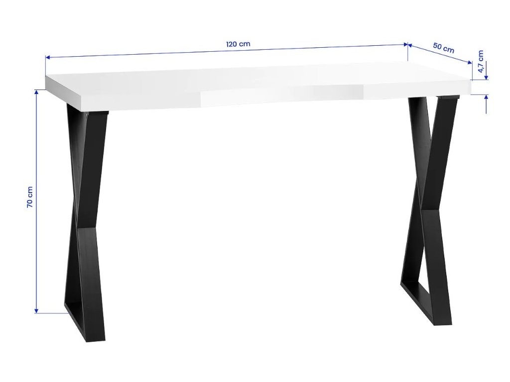 Bílá vysoce lesklá horní část a geometrické černé nohy mu dodávají lehkost a moderní charakter. Díky své lehké formě se stůl bude dobře hodit do intimních i prostorných interiérů a zdůrazní jejich exkluzivní charakter. Je to vynikající investice do estetiky a pohodlí každodenní práce.