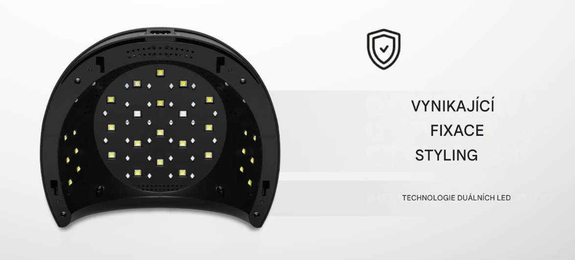 42 pečlivě rozmístěných LED diod zajišťuje perfektní vytvrzení gelů a hybridních laků – bez mrtvé zóny. Uzavřený tvar neboli kabinka , na který se tento model zaměřil, umožňuje přesnější a rychlejší vytvrzení nehtových vzorů. Technologie duálních LED diod umožňuje diodám vyzařovat světlo o dvou vlnových délkách, což snižuje namáhání očí a poskytuje zařízení široké spektrum účinku . Vybraná řešení usnadňují správné vytvrzení i těch nejnáročnějších produktů a umožňují vám dosáhnout i na ta nejhůře dostupná místa nehtové ploténky .